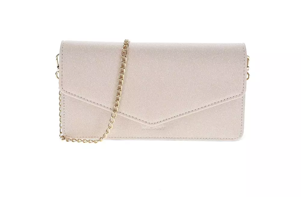 - Beige bag with gold-tone details and chain strap, other color options with silver-tone details and chain strap