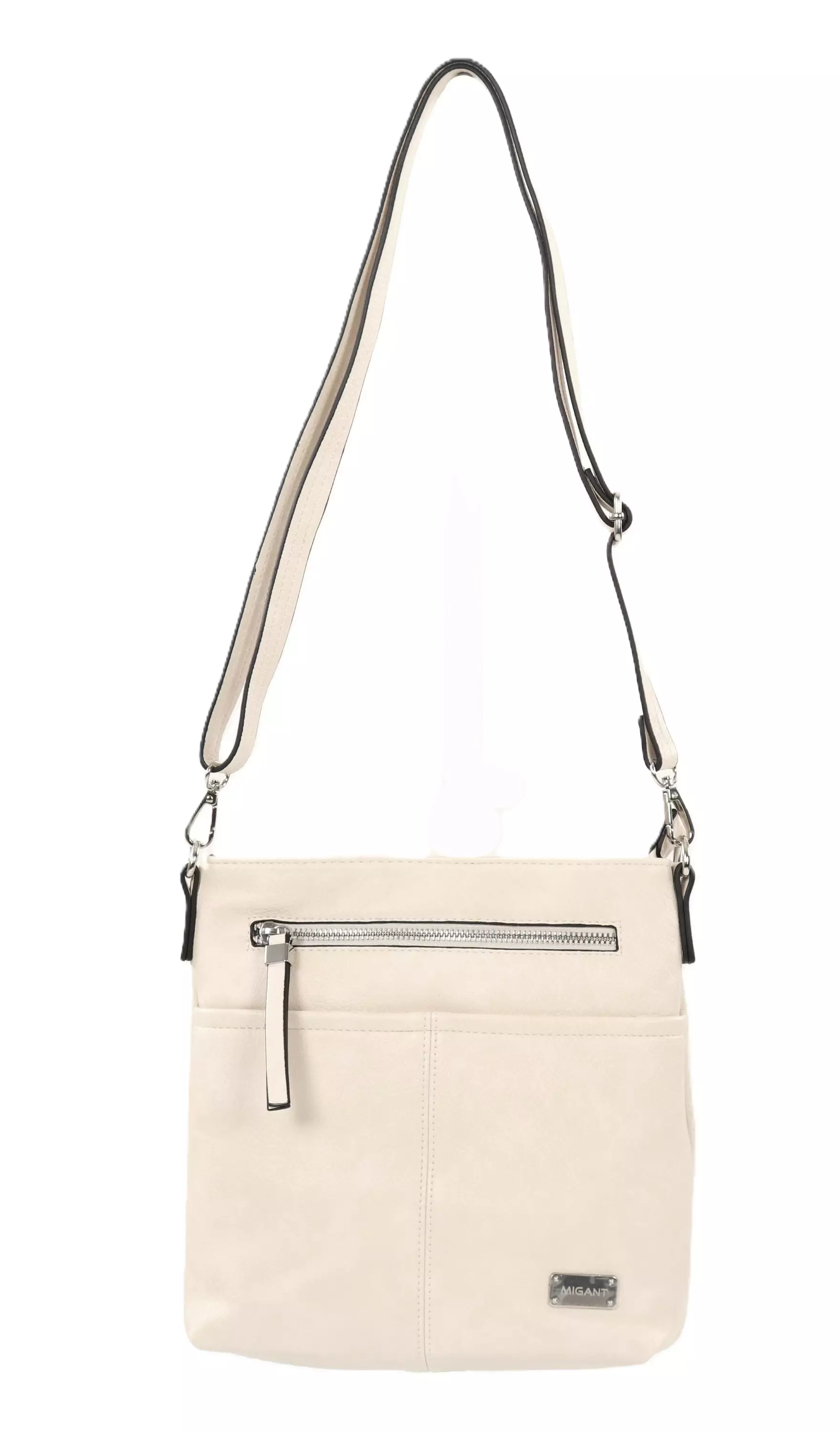 A spacious Migant shoulder bag with several pockets that keep your belongings organized. Comes with a wide, trendy textile strap that ensures a comfortable carrying experience and completes the stylish look.