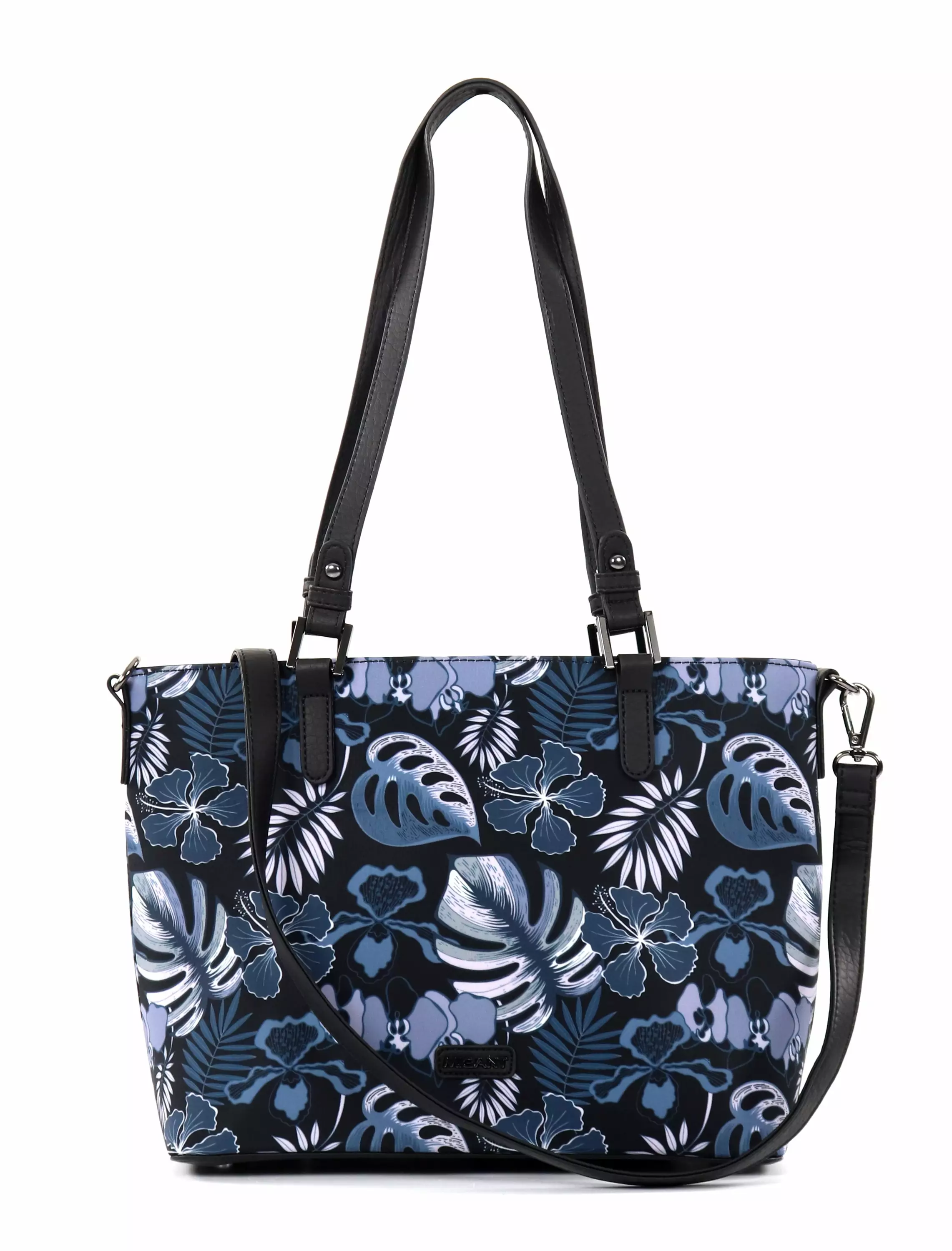 Beautiful patterned bag with carrying handles and a detachable shoulder strap.