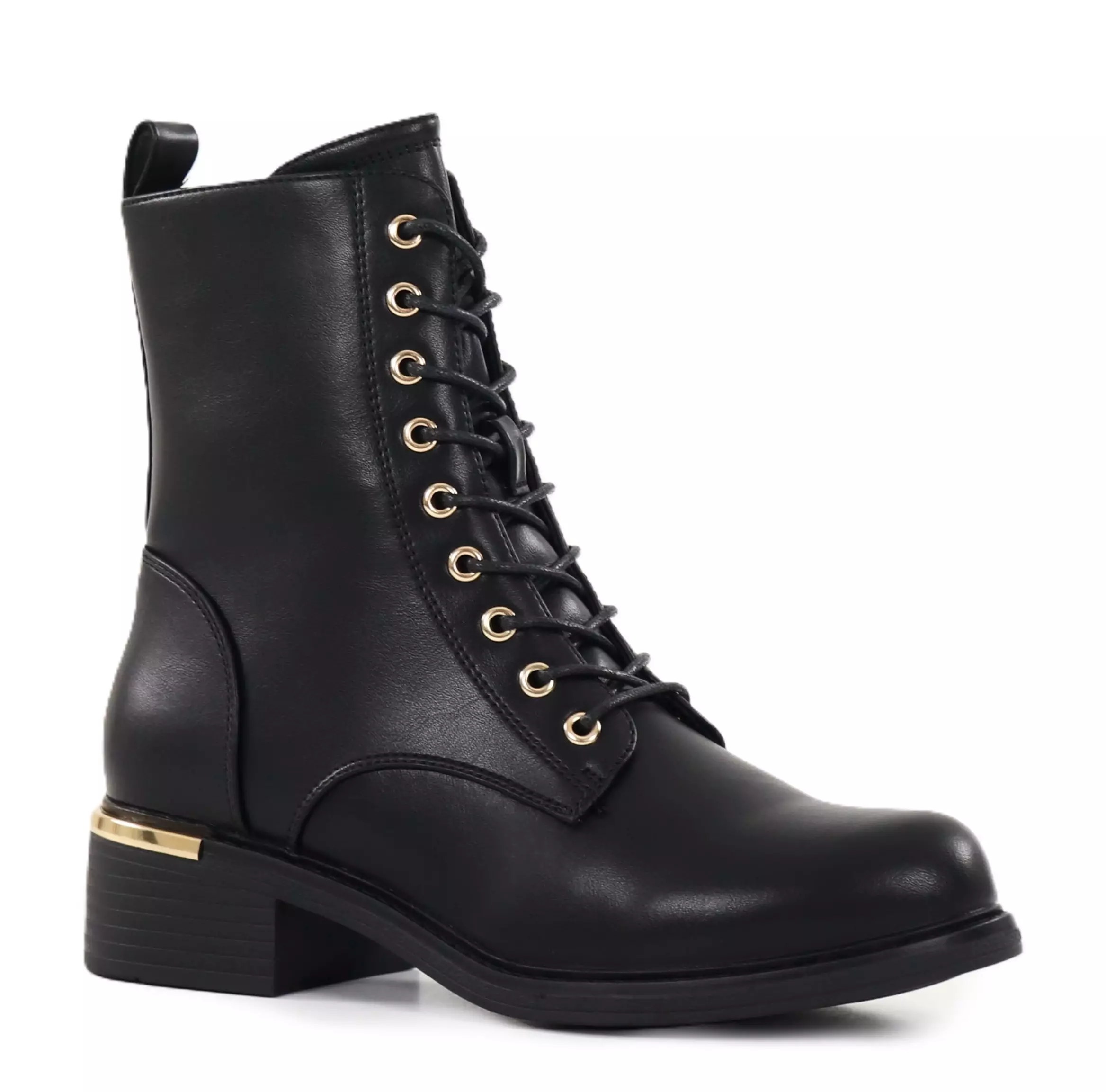 Stylish and graceful Migant ankle boots with golden details! The lacing allows you to adjust the shoes to fit your feet, and the zipper on the inner side makes it easy to put on.