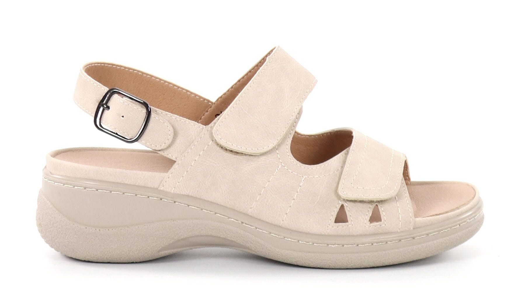 Migant sandals with velcro adjustable straps and padded, removable insoles.