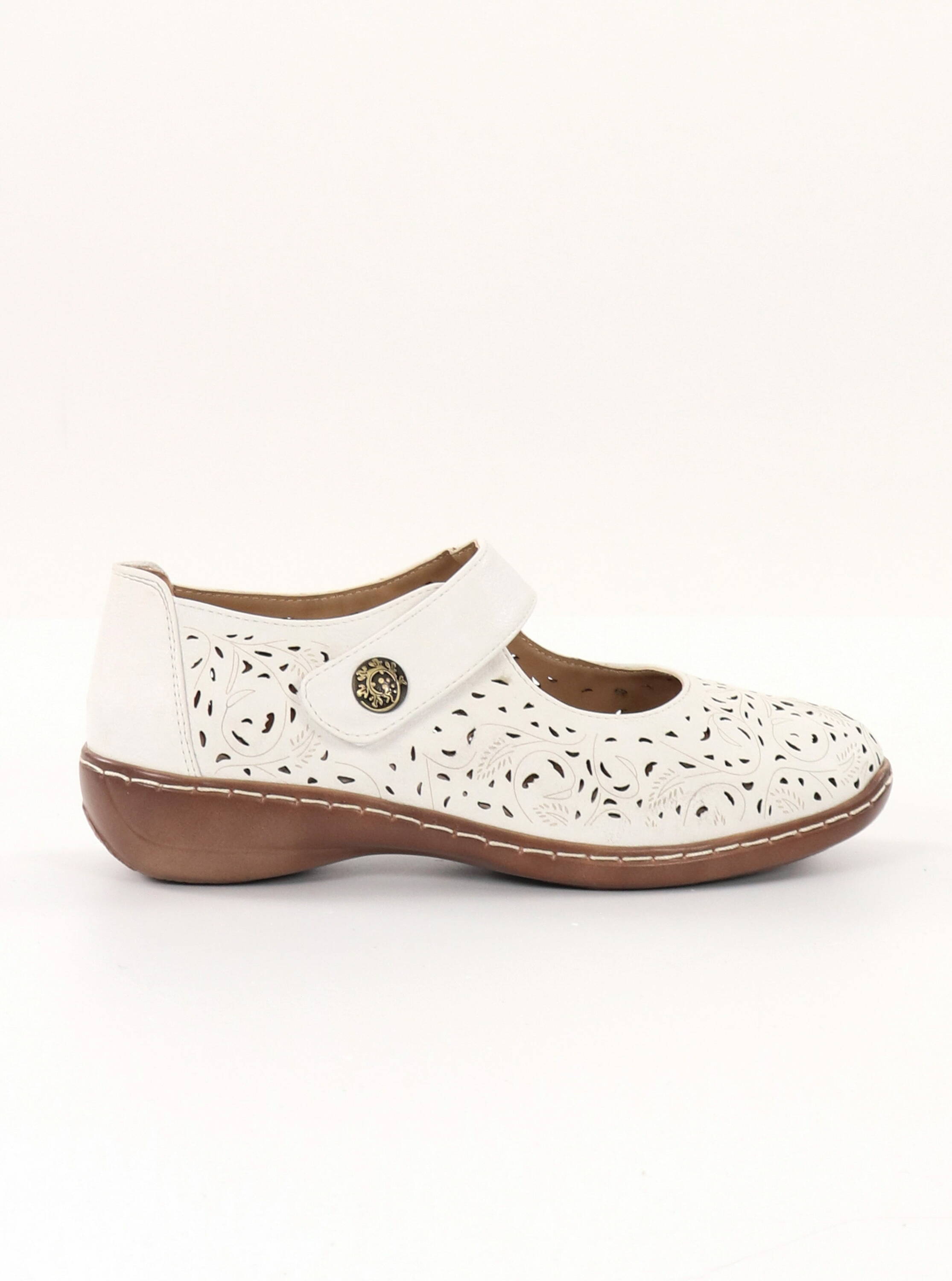Hole-patterned walking shoes with a flexible outer sole and removable insoles.