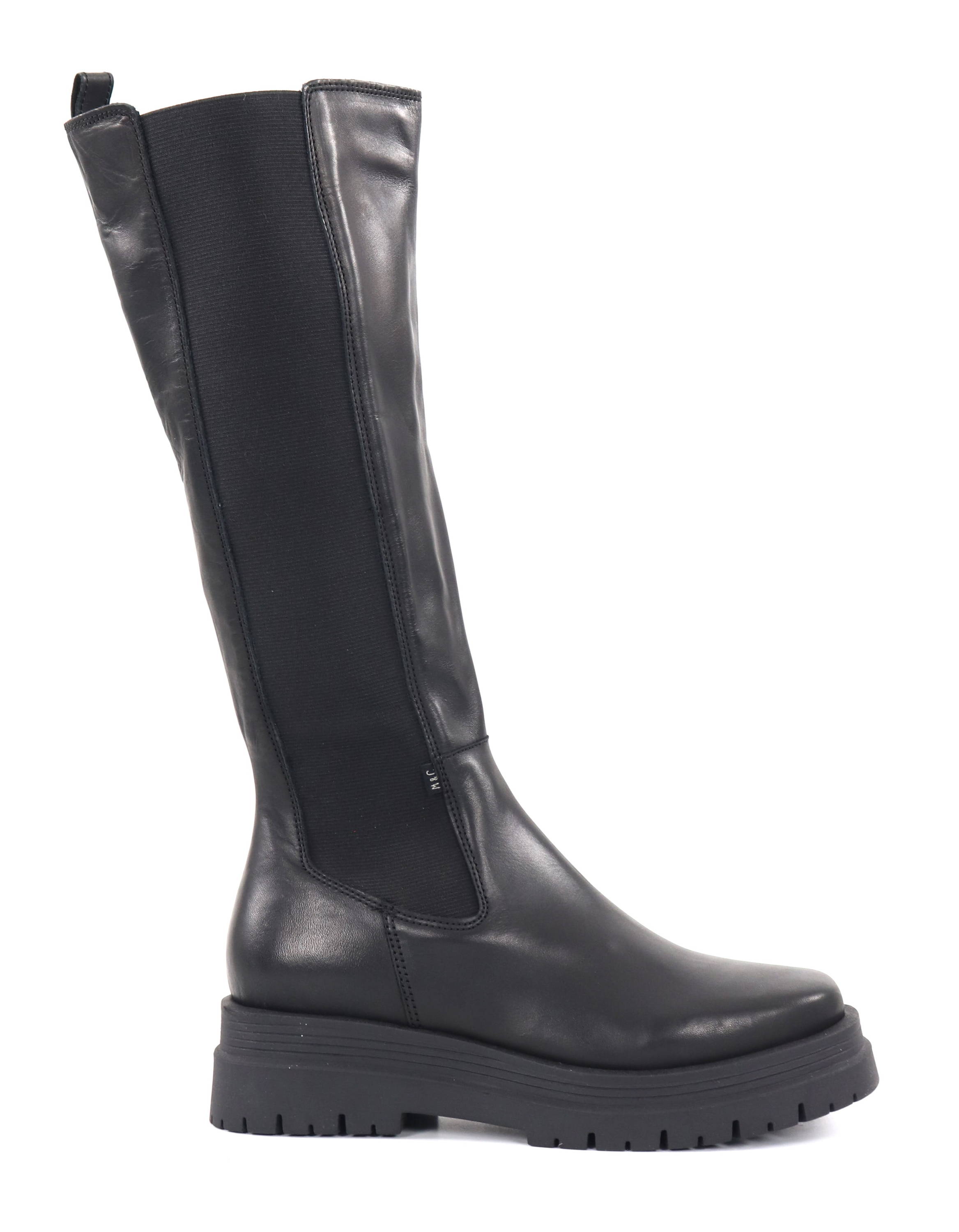 Thick soled leather boots with elastic gussets.