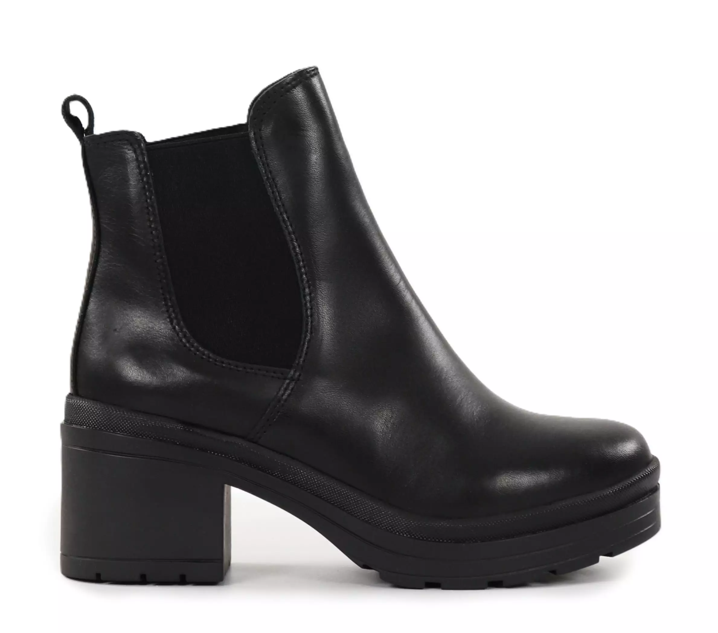 Black ankle boots with a sturdy platform heel, classic design and stretch on the sides for easy dressing. Genuine leather brings quality and durability. A versatile choice for everyday wear or for neater dressing!