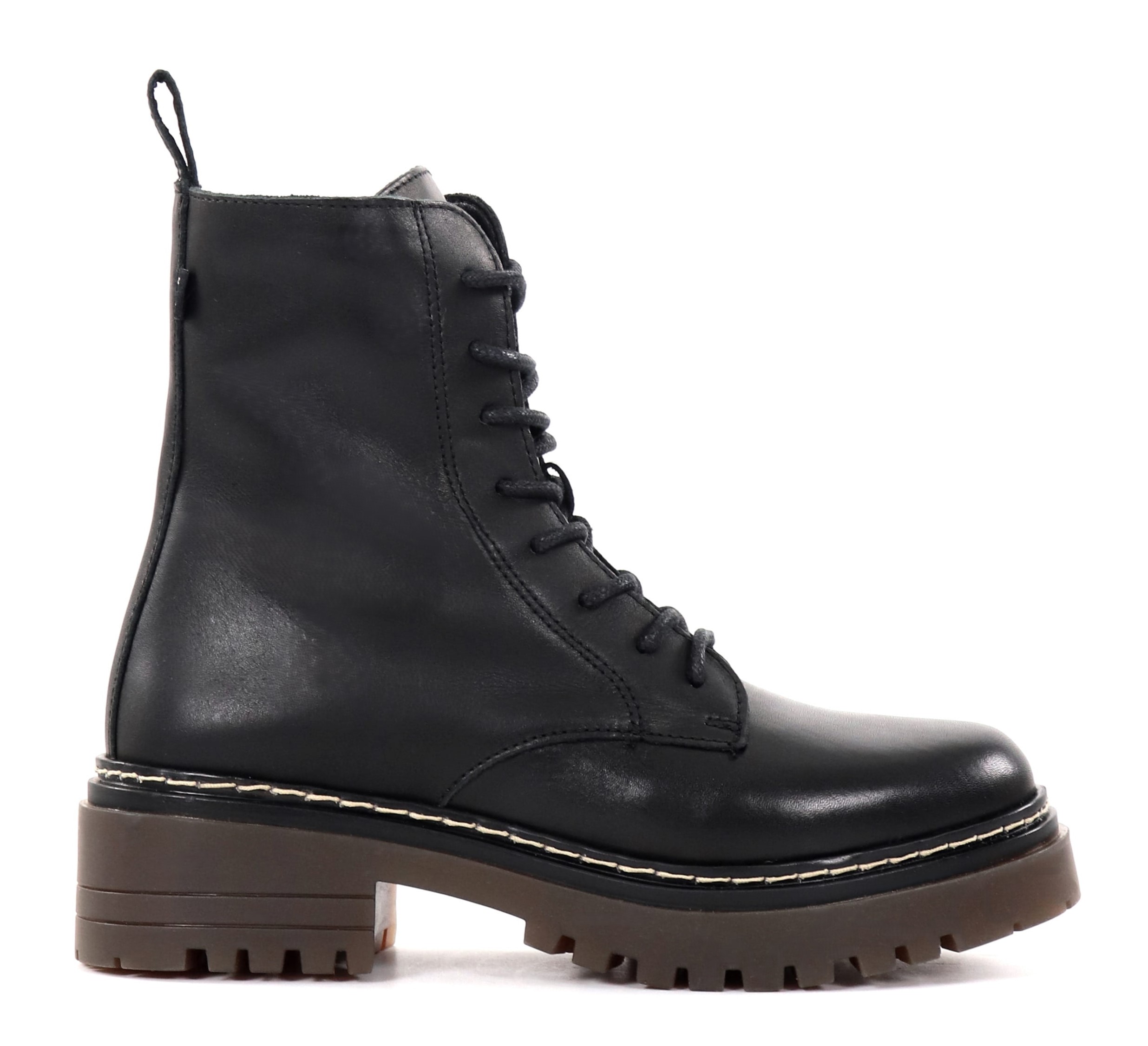 Ankle boots made of high-quality leather, with laces to adjust the fit. The zipper makes it easy and quick to put on the shoes!