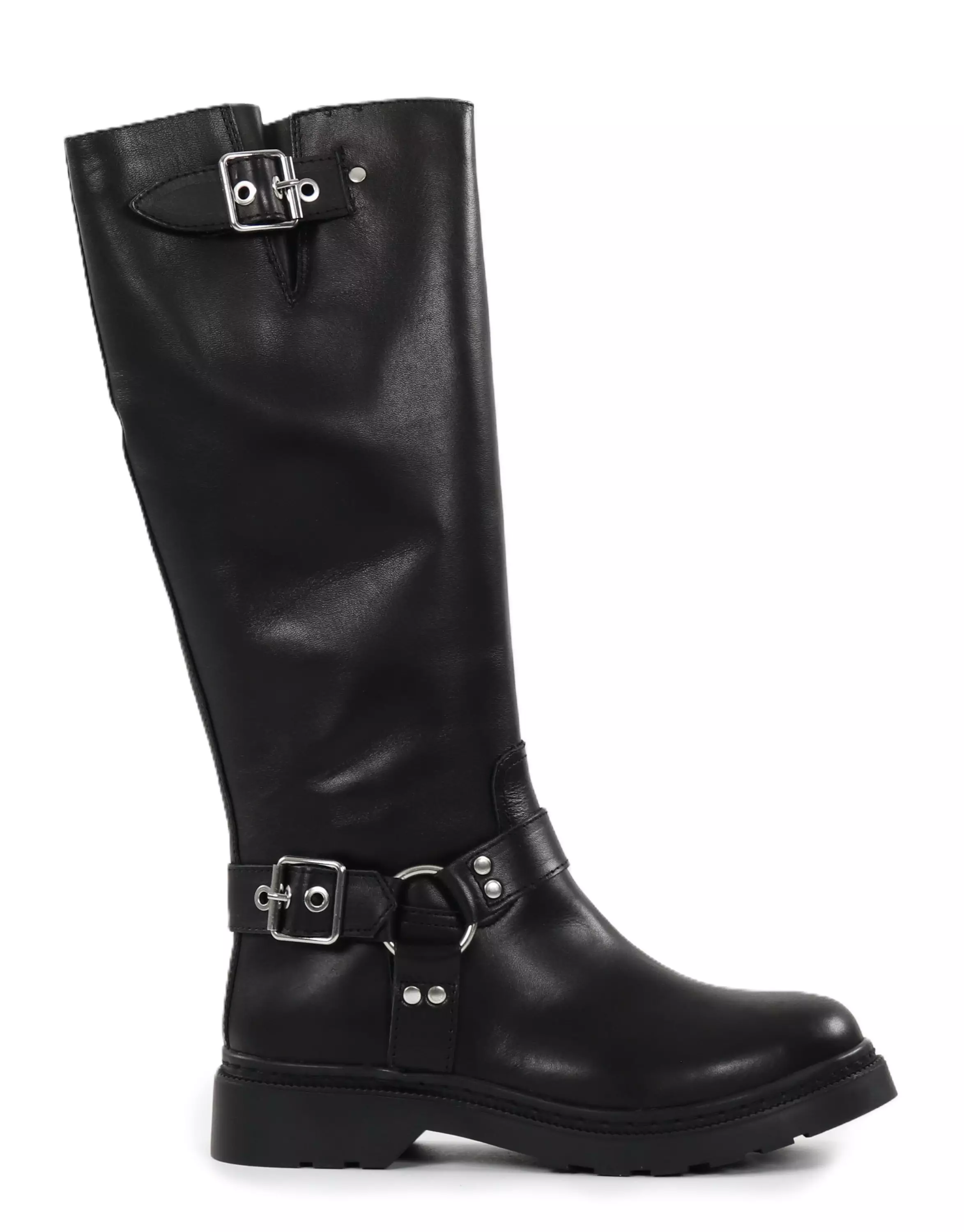 Genuine leather boots with buckle details that add attitude to your look! The zipper on the inner side makes it easy to put on, and the carefully finished design makes the shoes a versatile choice.