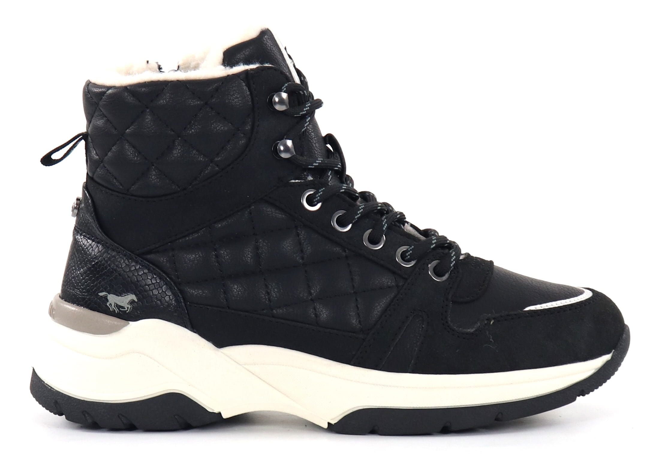 Warm ankle boots with quilted details on the sides.
