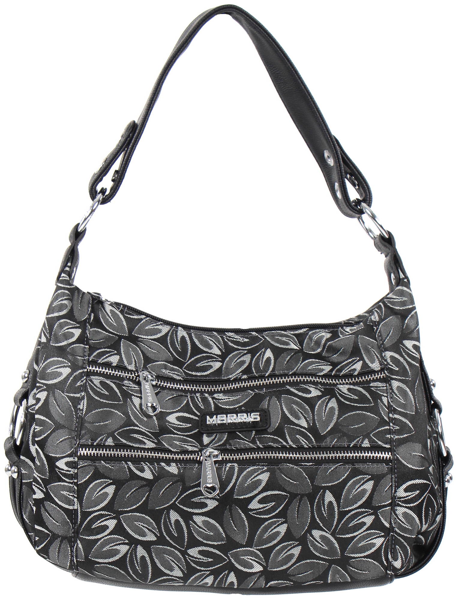 Fabric bag with leaf pattern.