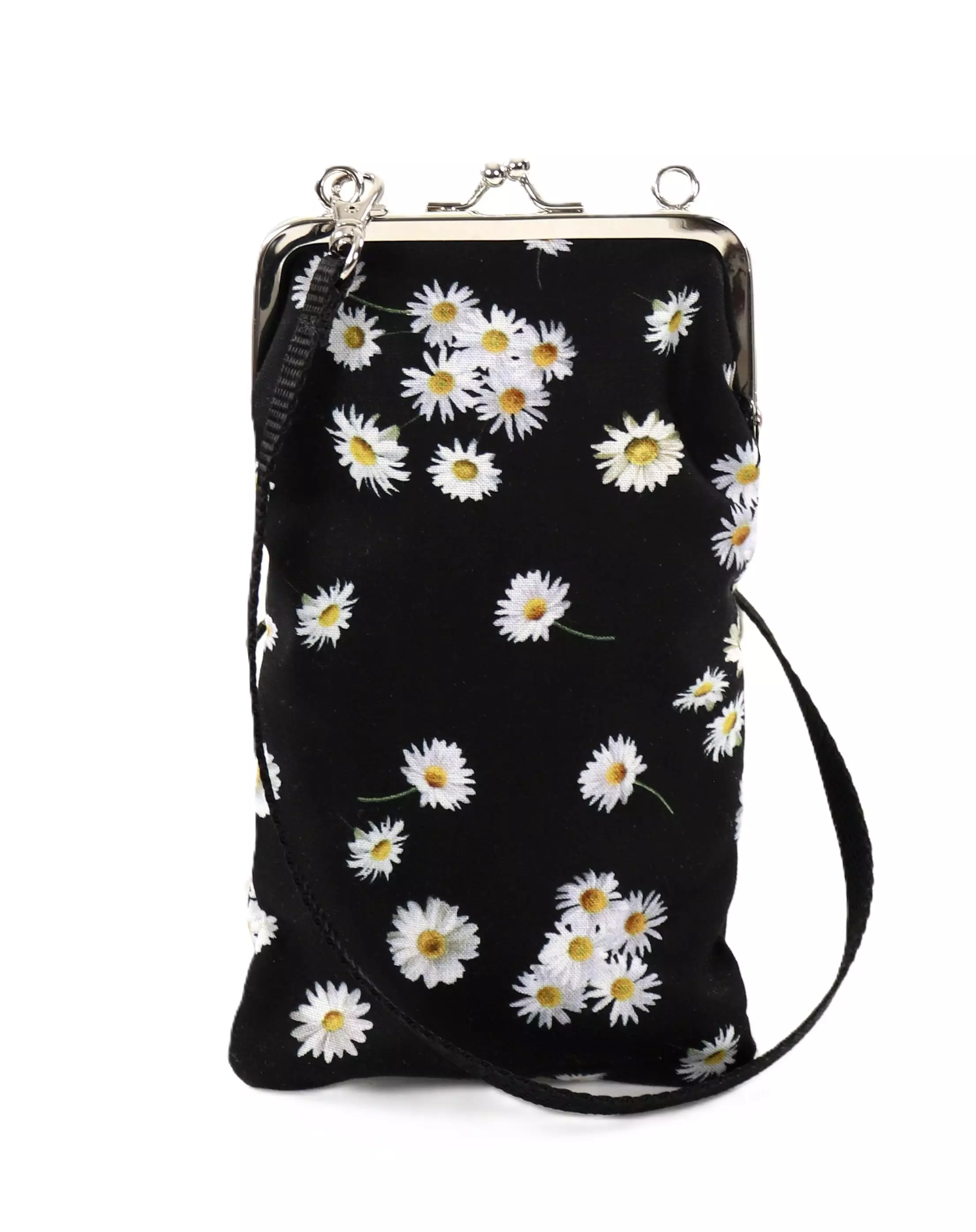 Fabric purse with pattern and carrying strap. Can also be used as a phone pouch!