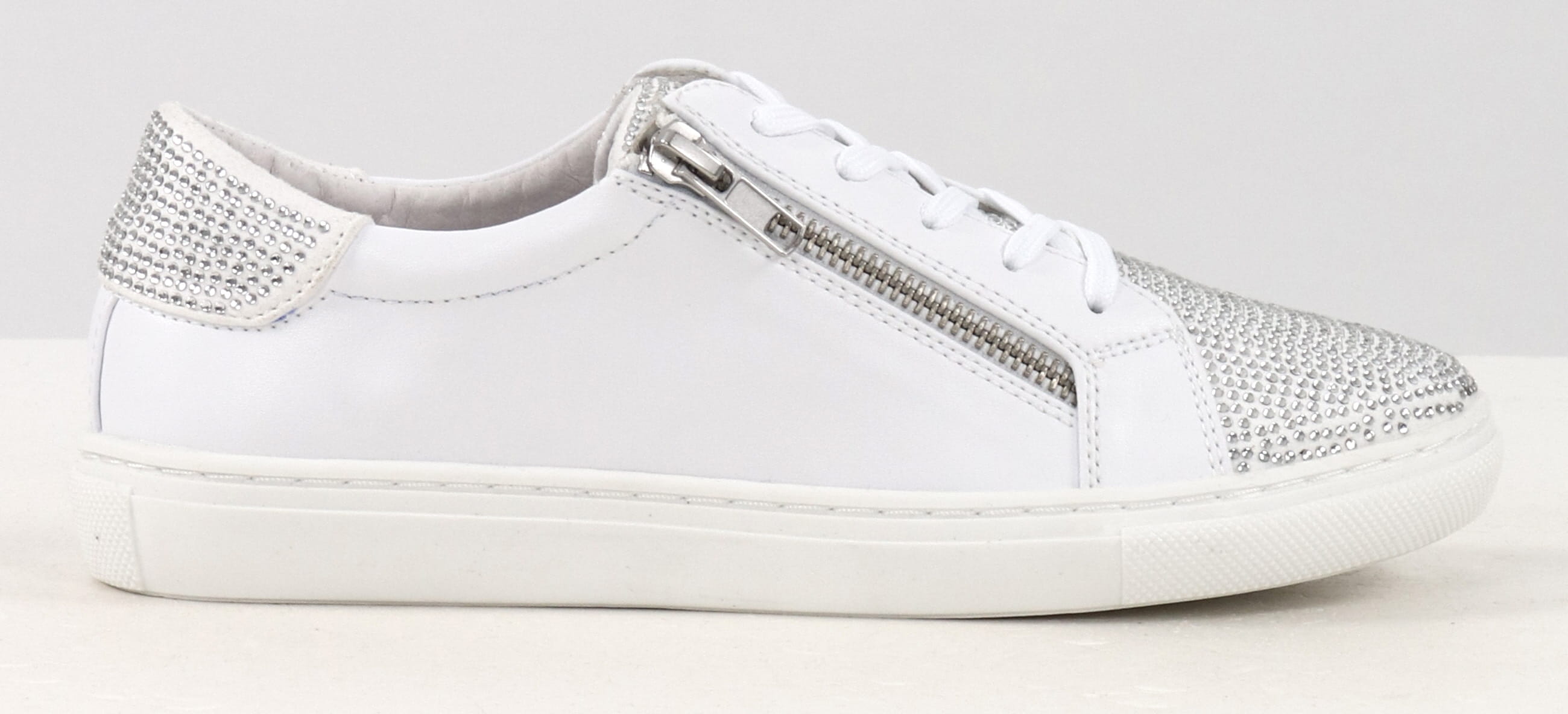 Leather sneakers with diamond decorations.