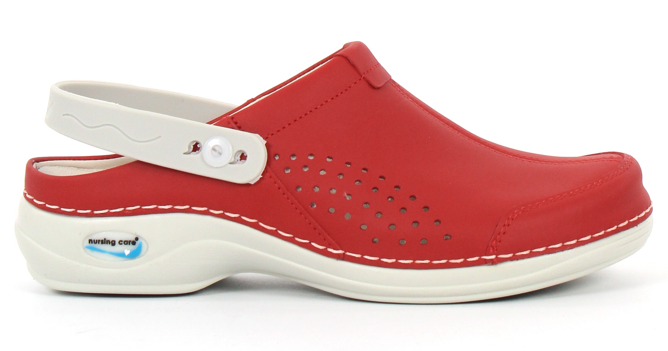 Nursing Care Machine Washable Work Shoes Leather, Red
