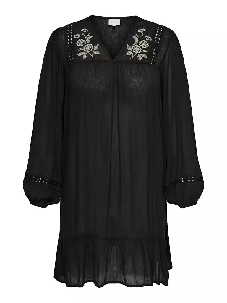 Plus size tunic/dress with beautiful floral embroidery on the front. The light and ecological viscose drapes beautifully, feels comfortable on the body and is suitable for both everyday wear and more casual parties.