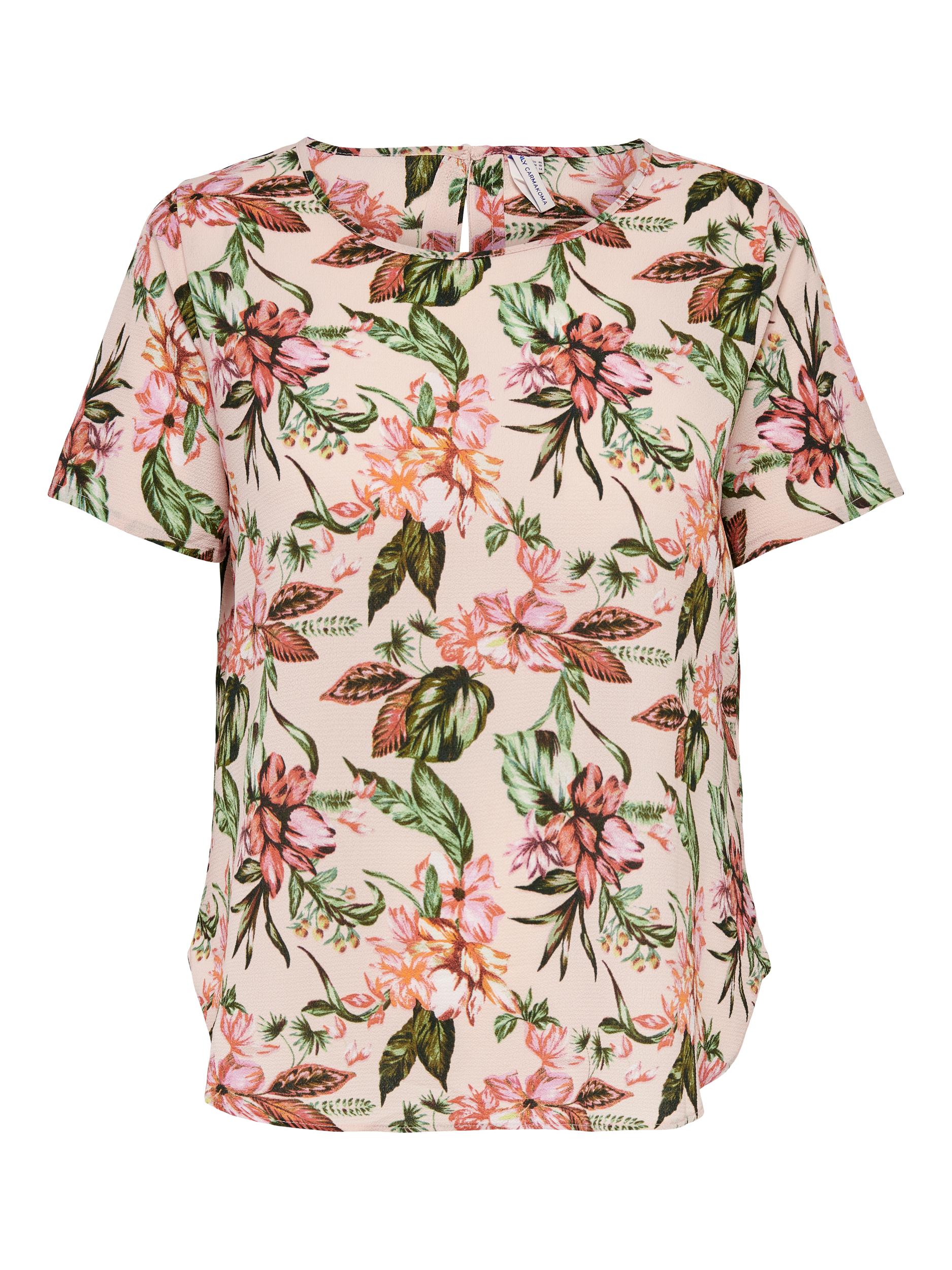 Flower patterned plus-sized T-shirt made of crepe fabric.