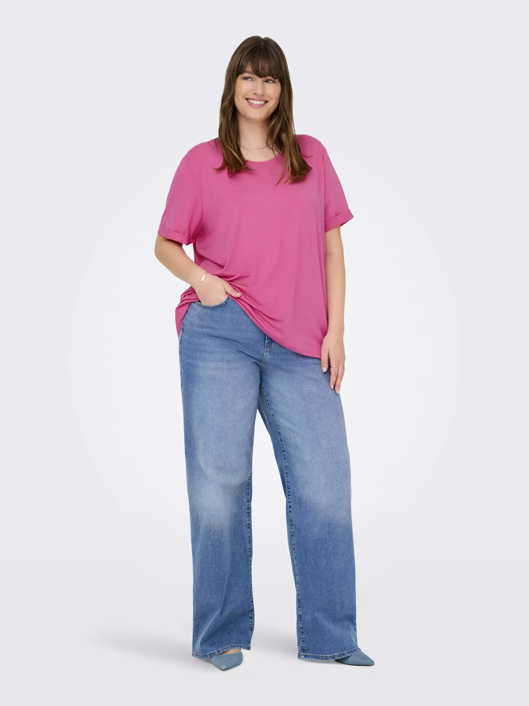 Only Carmakoma Women's Plus Size T-Shirt Moster Fold Up gin fizz