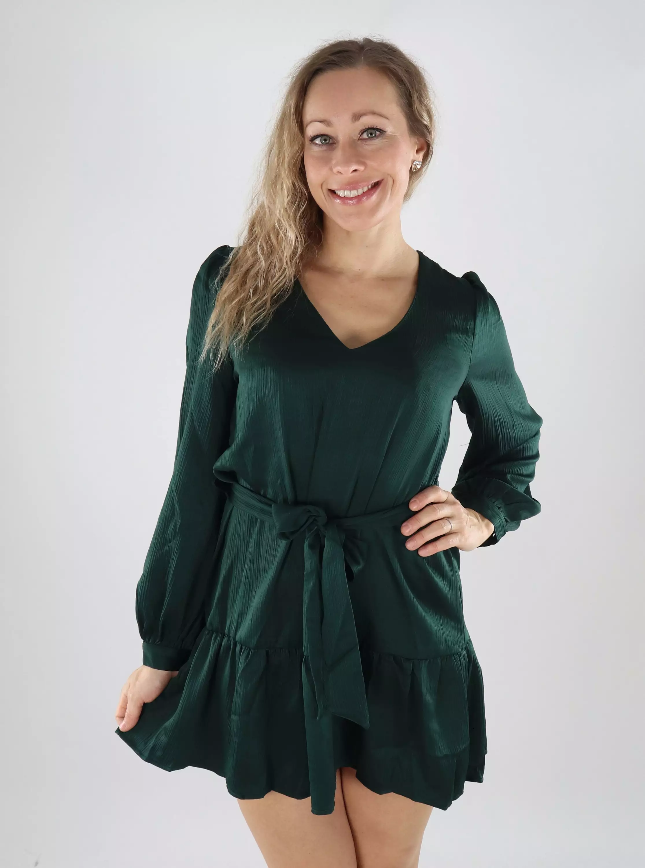 Onlys kortärmade klänning imponerar med sin lätt veckade yta och mörkgröna nyans. Det lätta materialet och det vackert böljande tyget gör den till ett mångsidigt val!