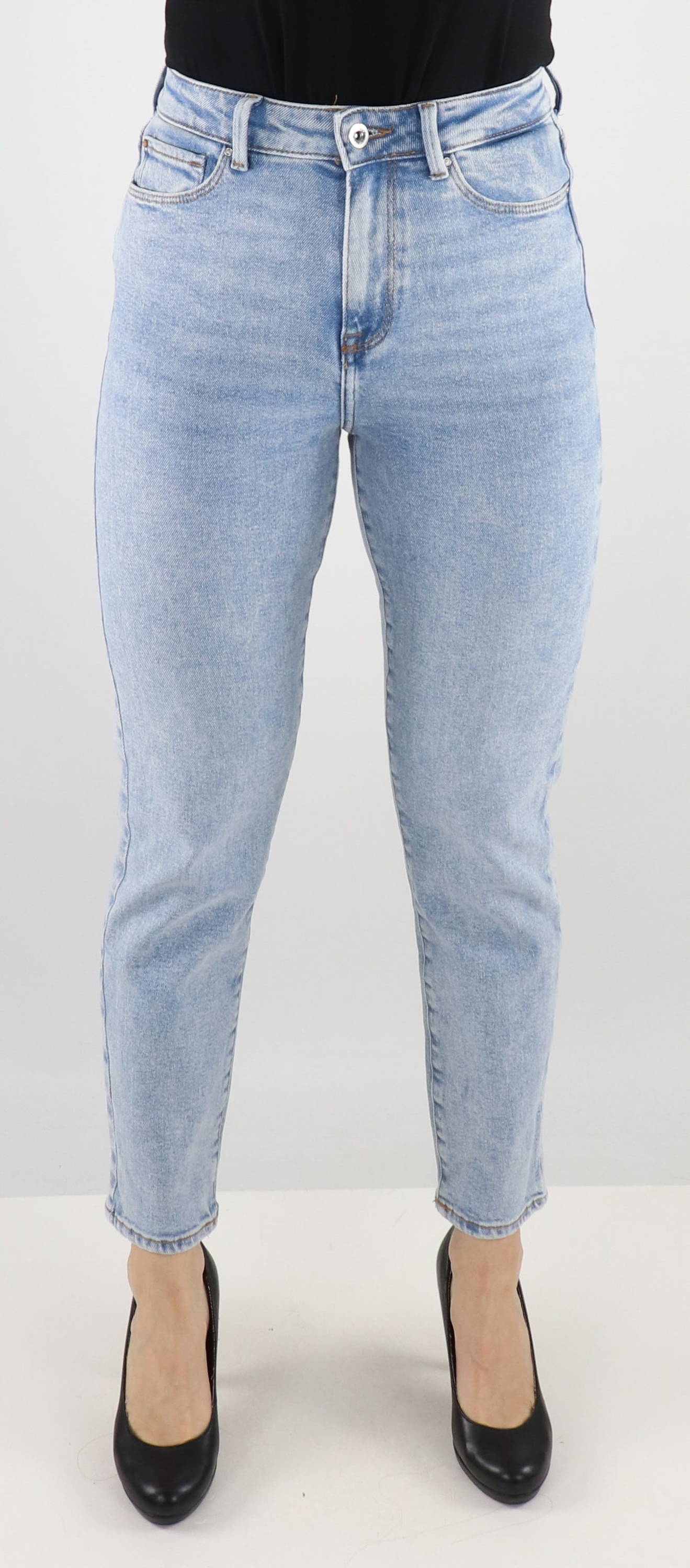 The color of the jeans is blue, so you can style several outfits - in our online store. There are several options, for example you can choose a black t-shirt and combine it with black high heels. You can find everything you need in the Stilettoshop.eu online store