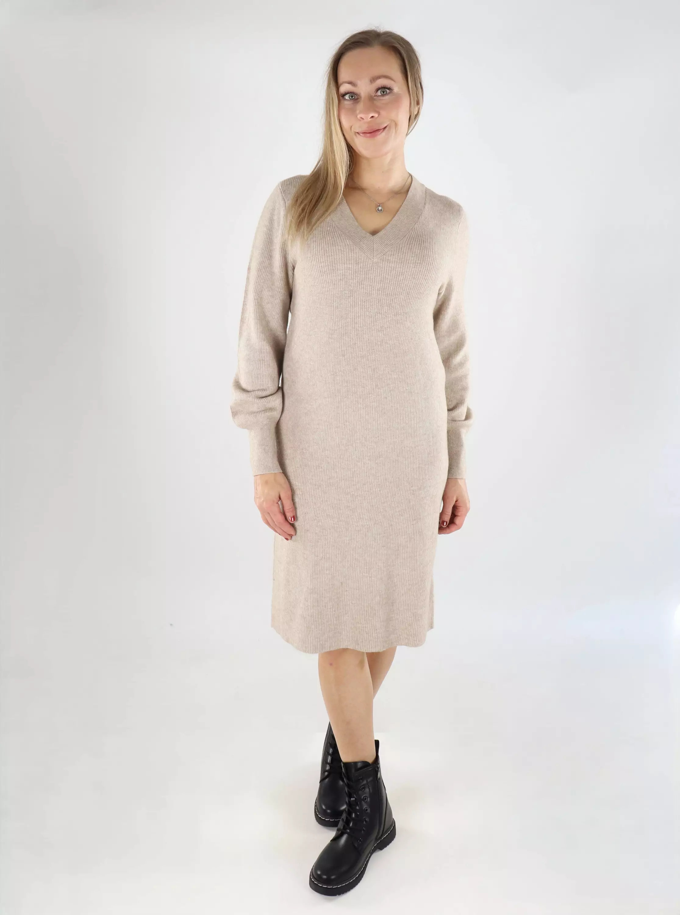 Only knit dress V-Neck mocha meringue