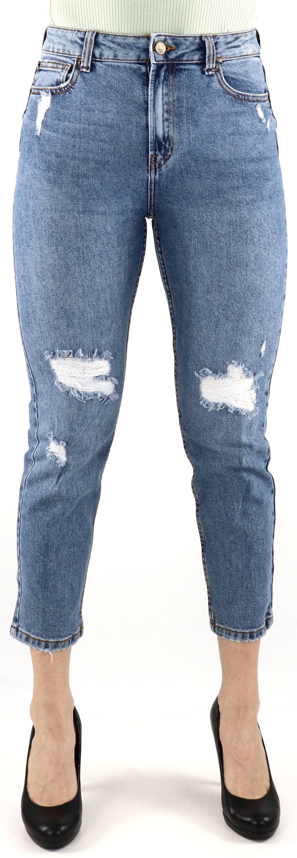 The color of the jeans is blue, so you can style several styles - in our online store. There are several options, you can choose, for example, a black little jacket and combine it with black high heels. You can find everything you need in the Stilettoshop.eu online store