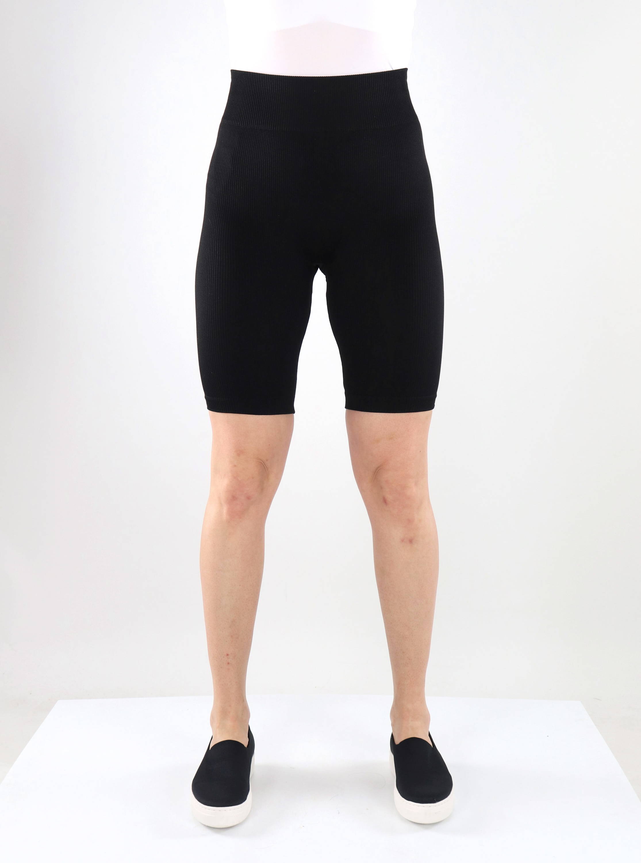 Elastic high-waisted sports shorts with a supportive, wide waistband.