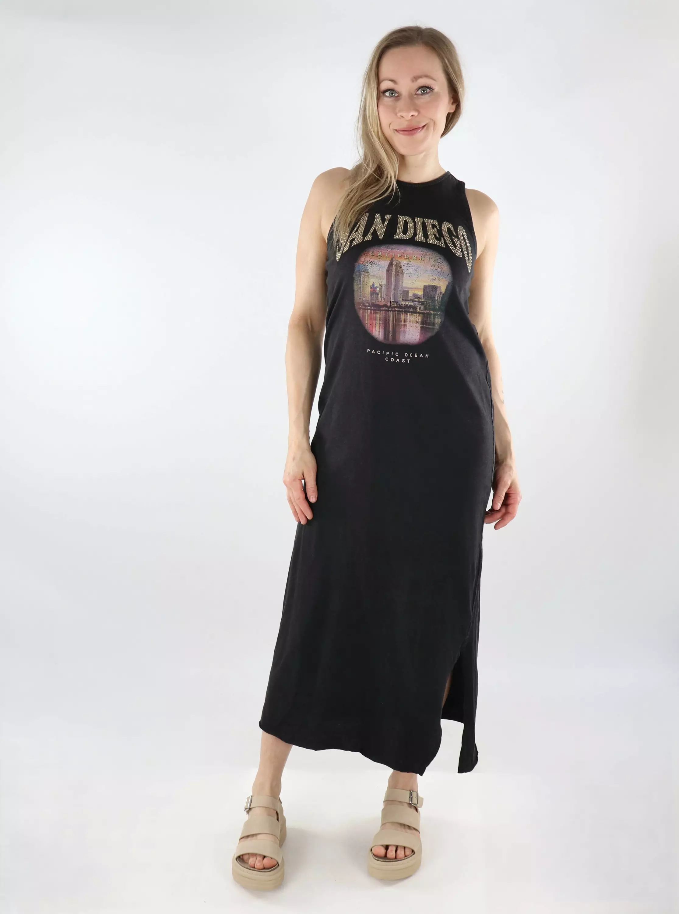 ONLY's organic cotton jersey dress combines comfort and showiness. The rhinestone-embellished print adds sparkle to the outfit, and the side slit adds lightness and mobility. An easy choice for everyday wear when you want to stand out with style.