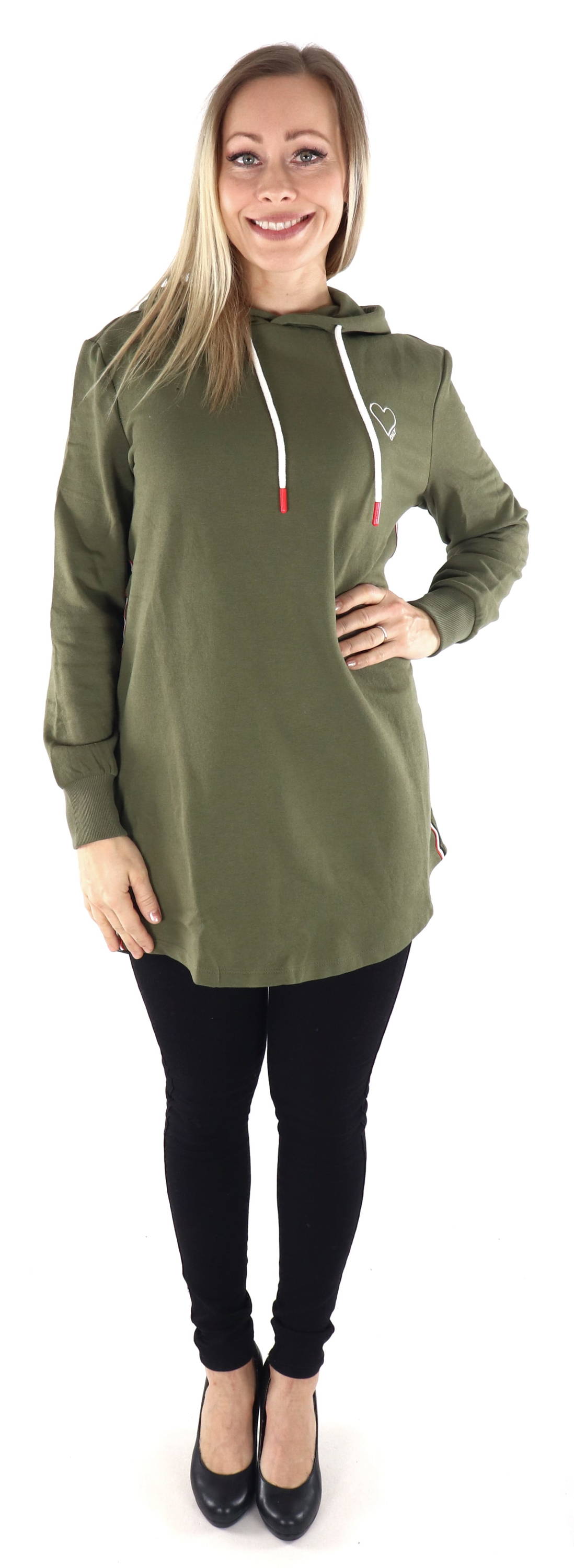 Sweatshirt dress with hood and ribbed sleeves.