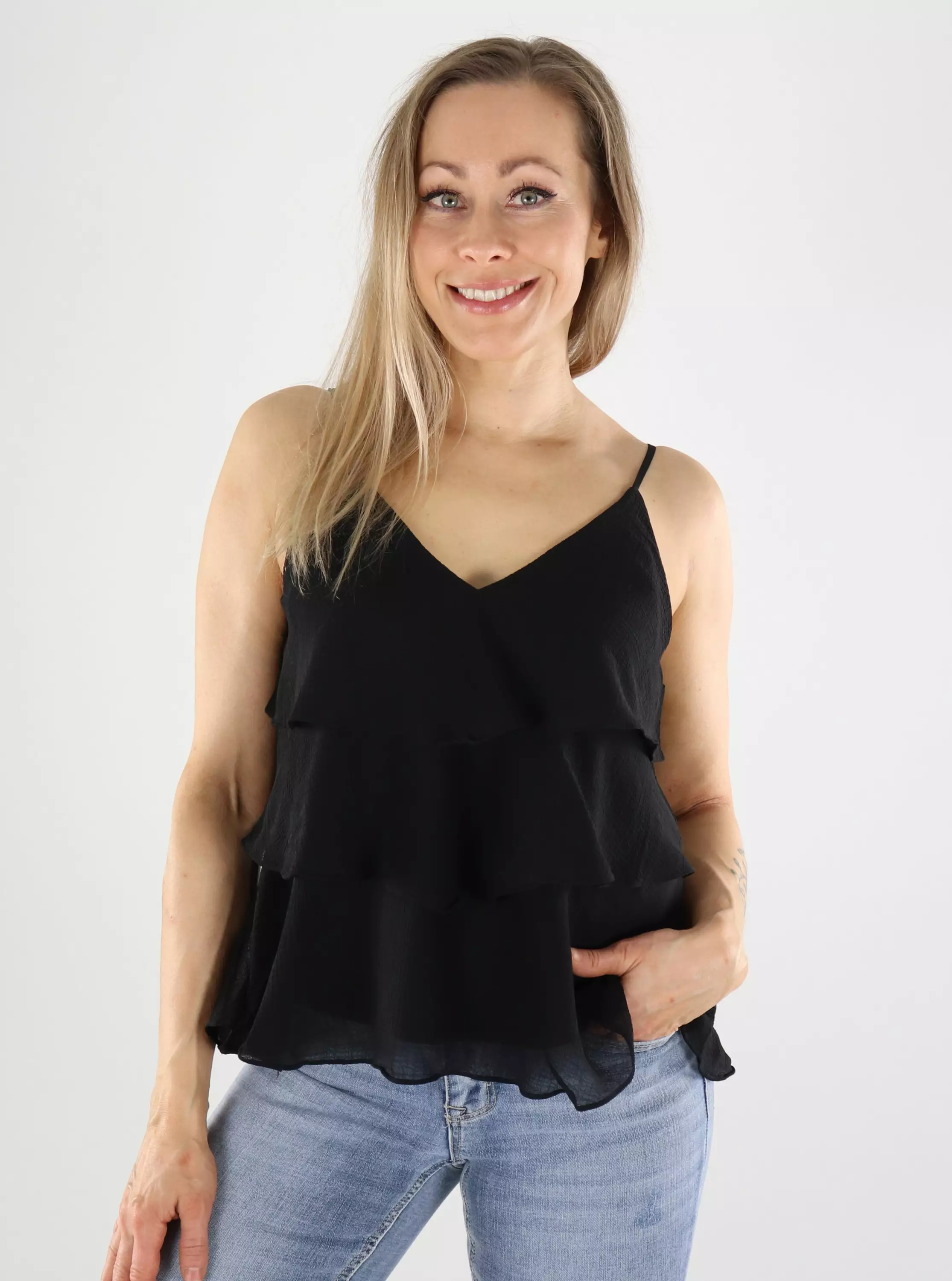 A beautiful and elegant choice for everyday life or a party! This ONLY top charms with feminine frill details and a flattering V-neckline.