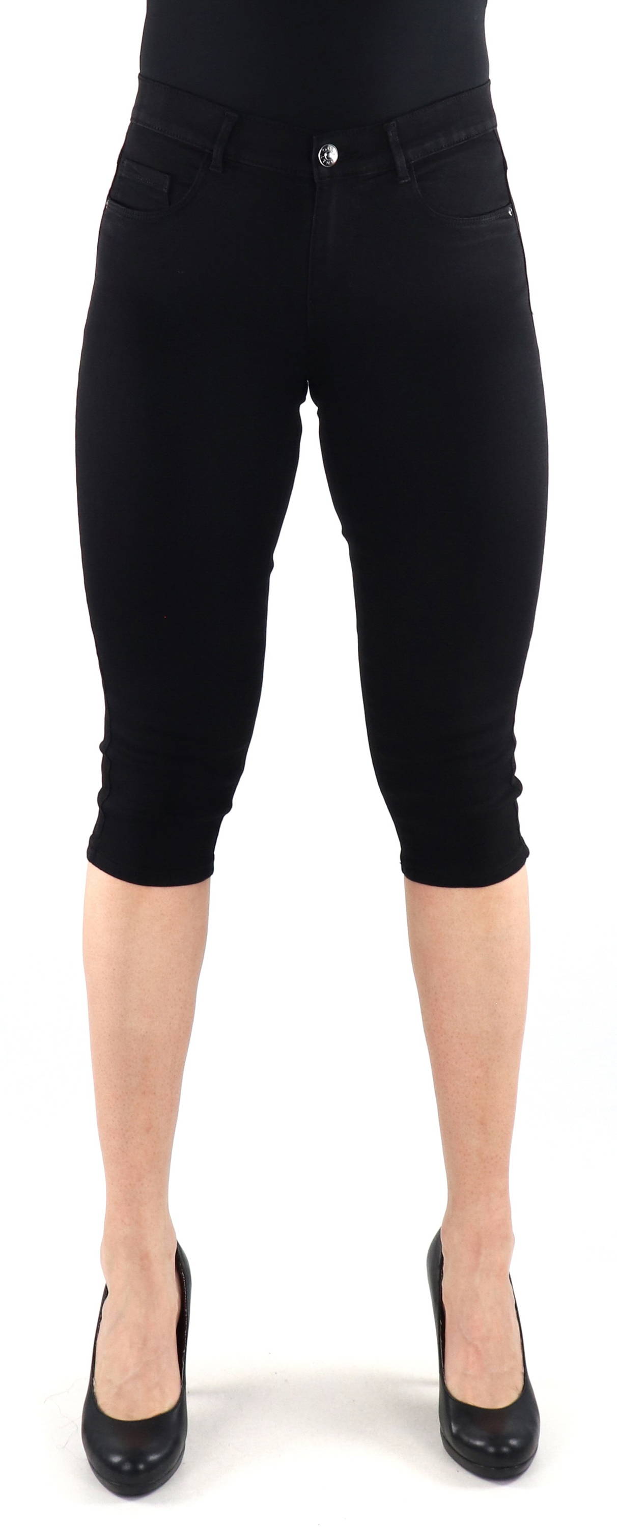 Classic elastic capris with normal waist height.