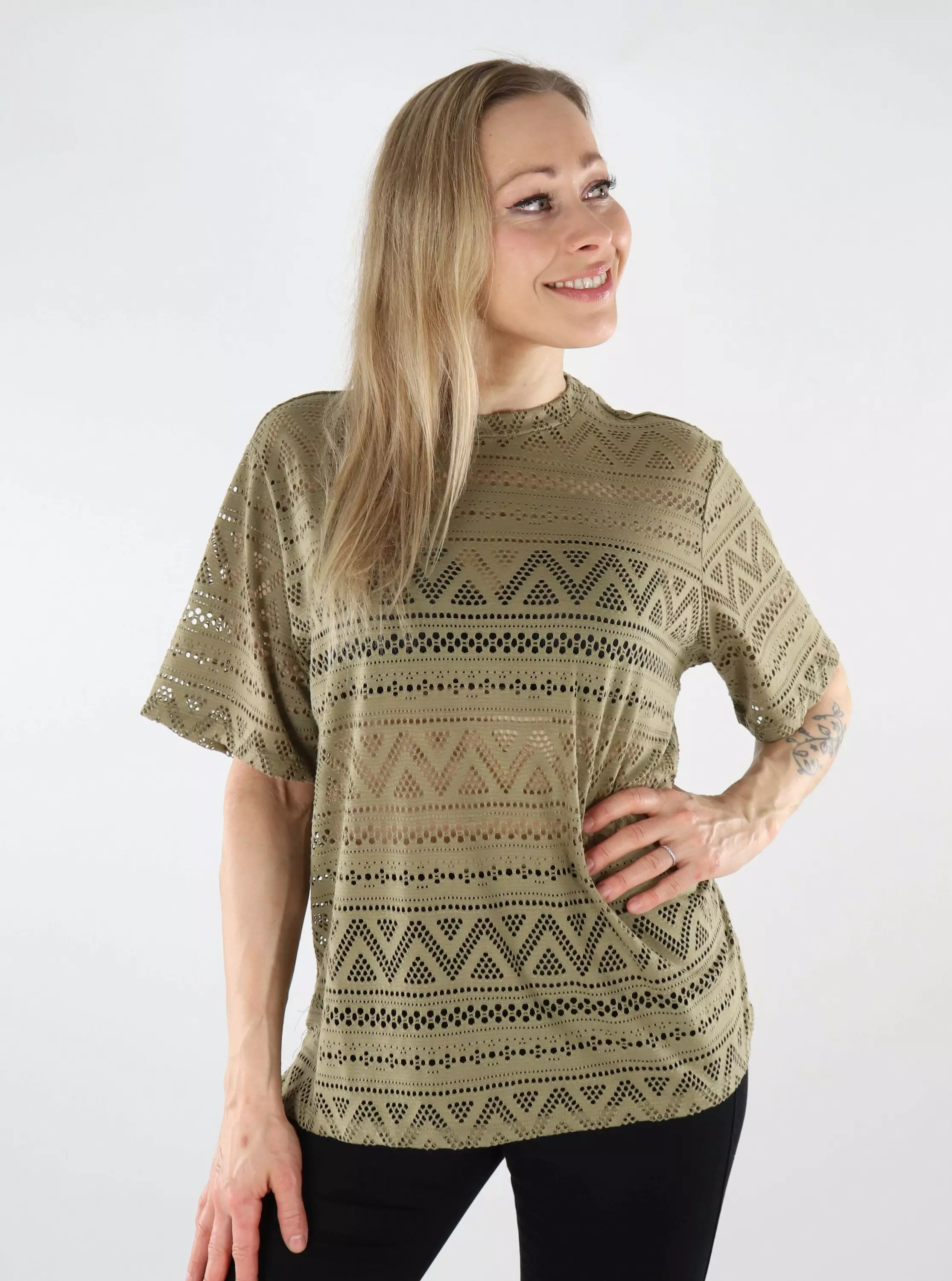 This Only t-shirt combines a trendy lace pattern with comfortable elasticity. An easy choice when you want to look good casually!