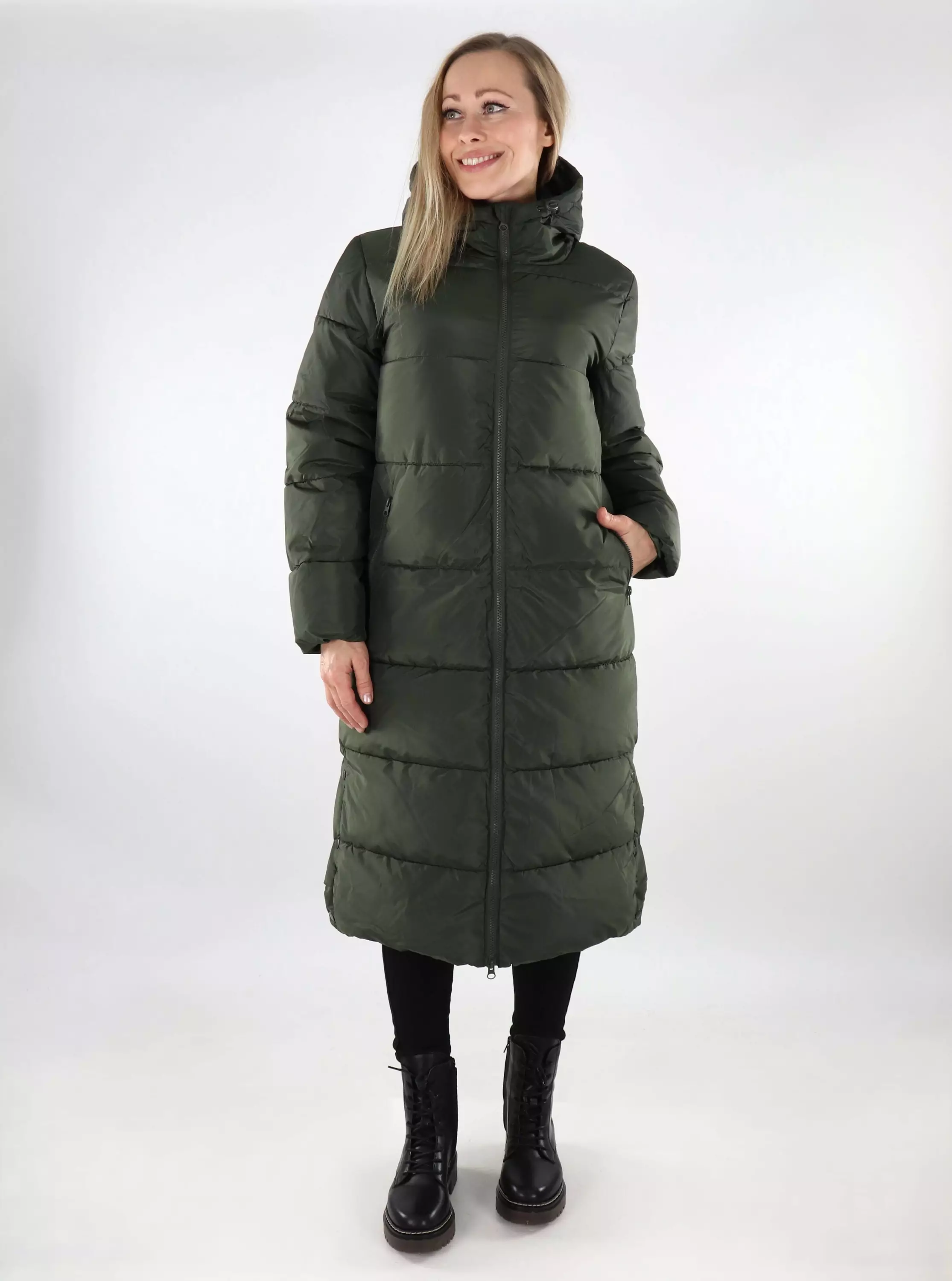 Only women's long winter coat Montana Long forest night