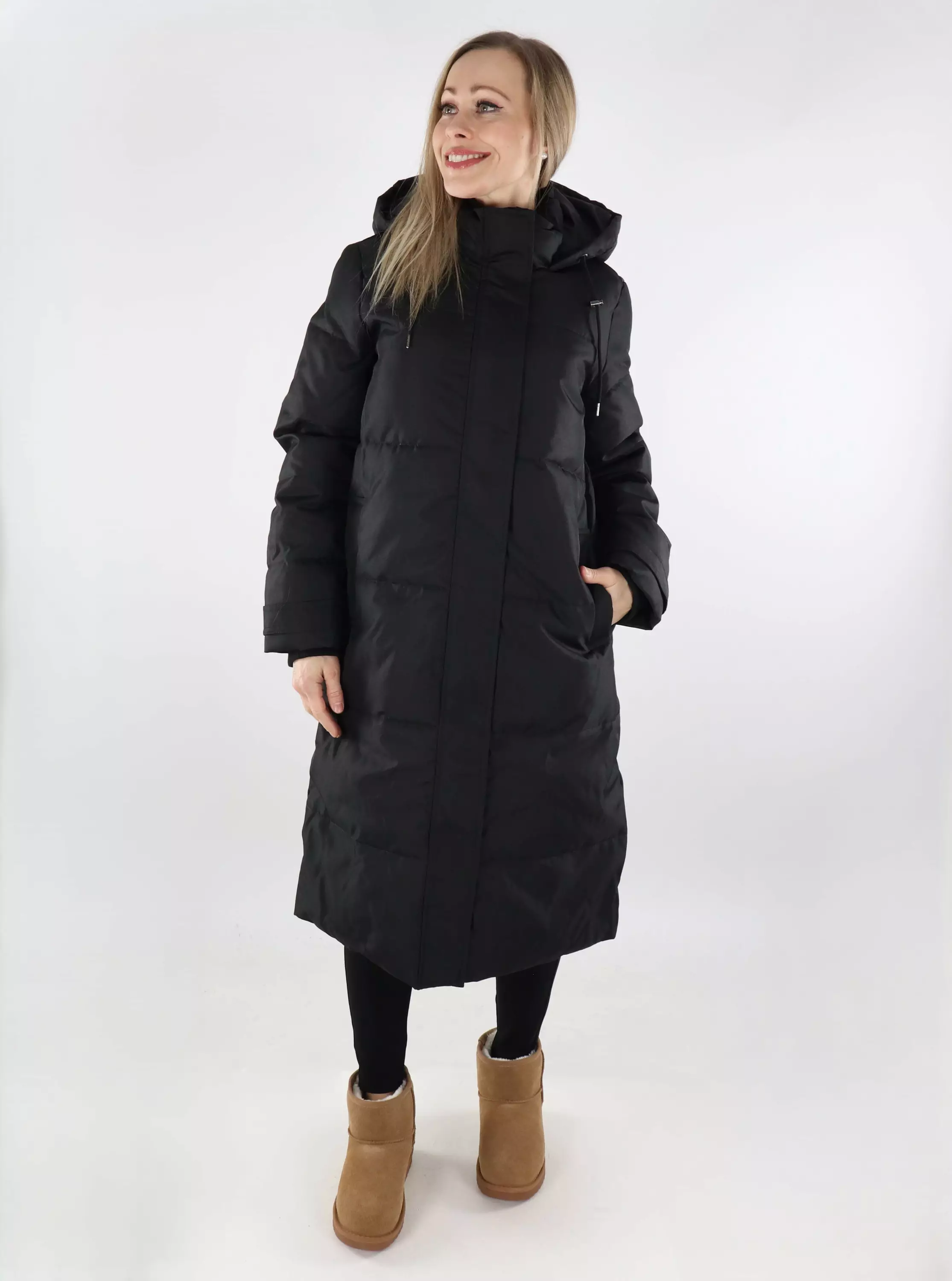 A long puffer-style padded coat is a winter staple that will keep you warm even on cold days!