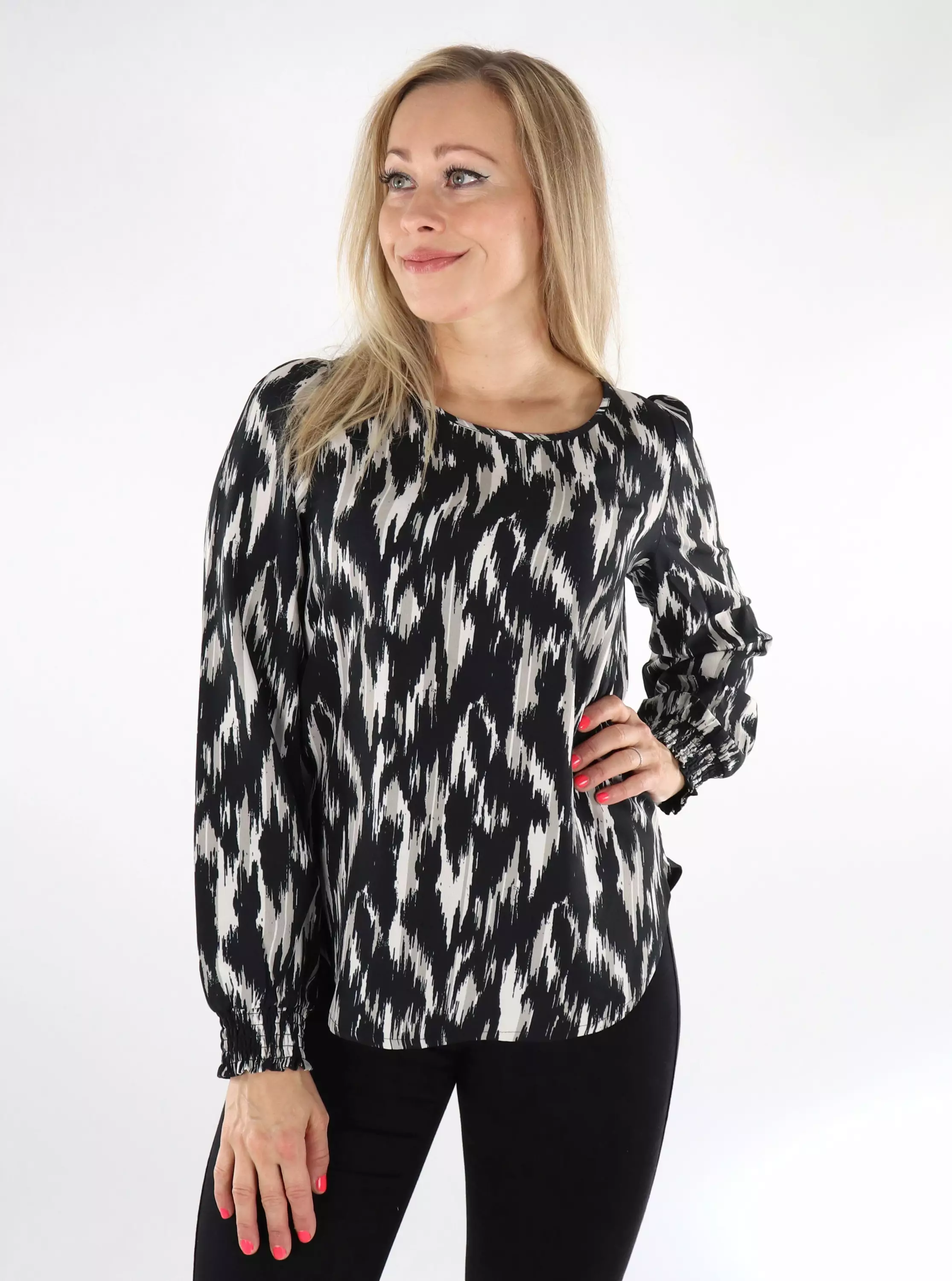 Light and versatile shirt with rounded hem and ribbed cuffs.