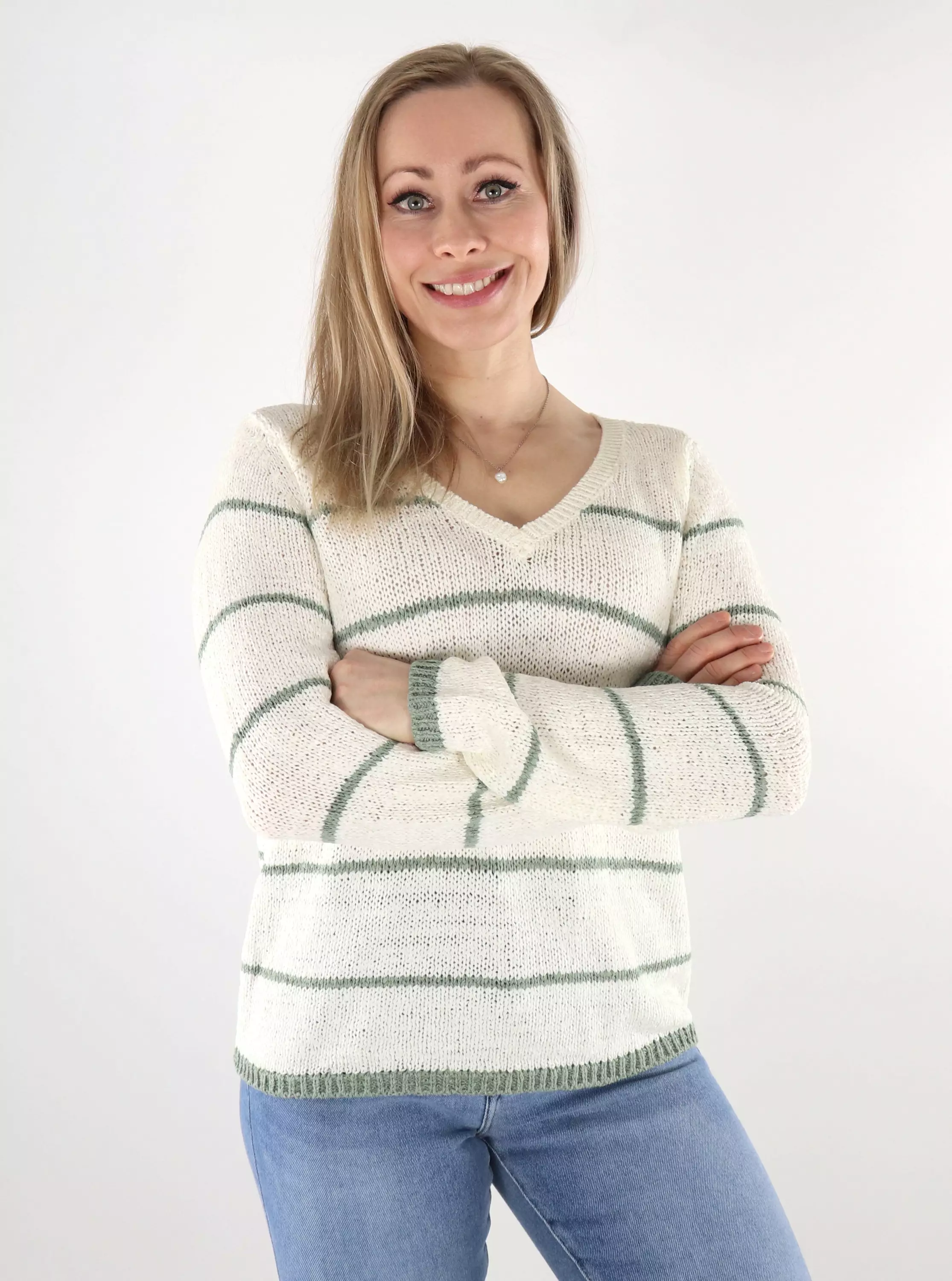Only women's striped sweater V-Neck cloud dancer / w. lily