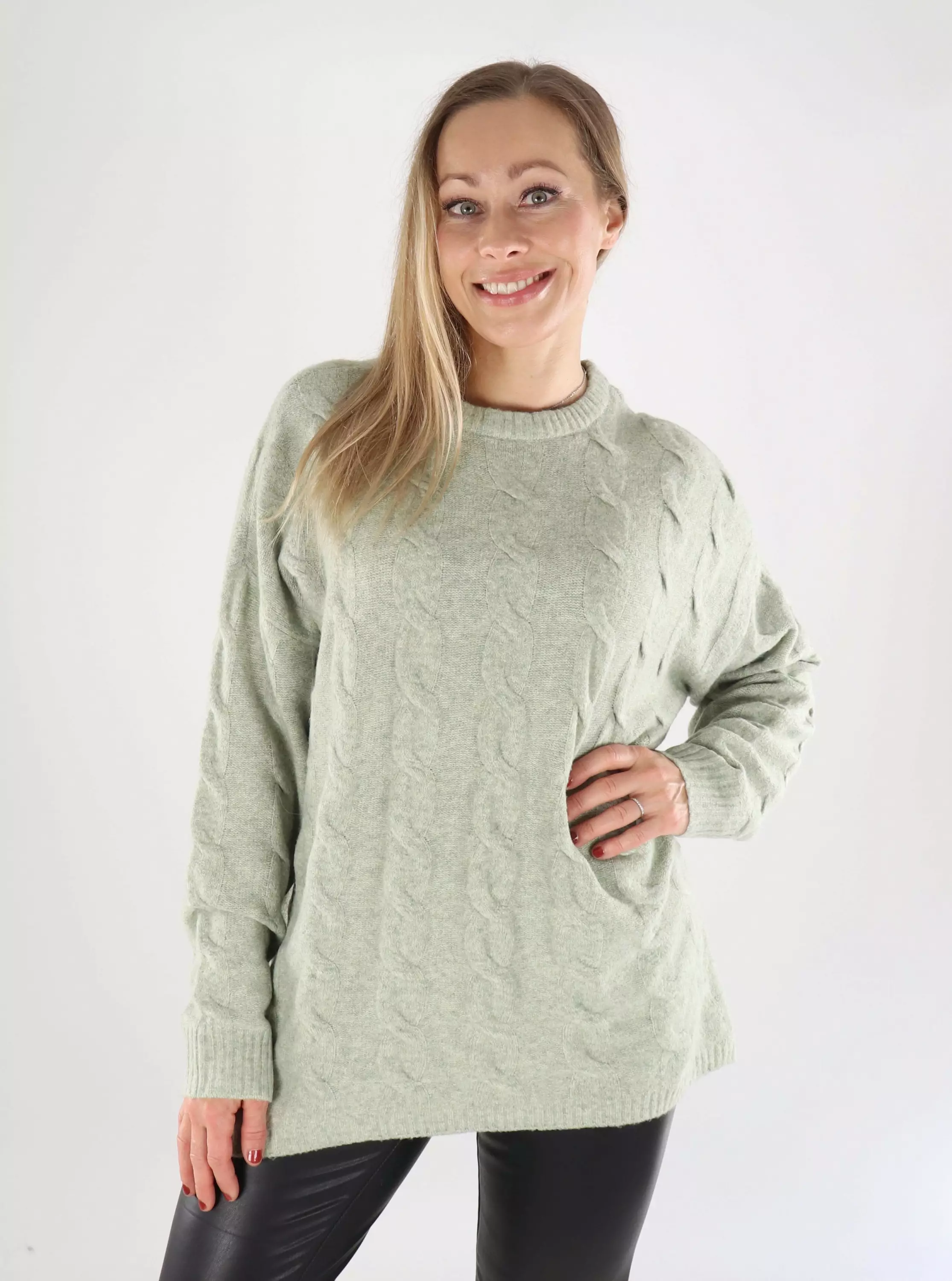 Only's sweater with a longer hem at the back and a beautiful cable knit. The pleasantly soft material and relaxed fit make the sweater an easy choice for everyday wear. Goes well with jeans and leggings.