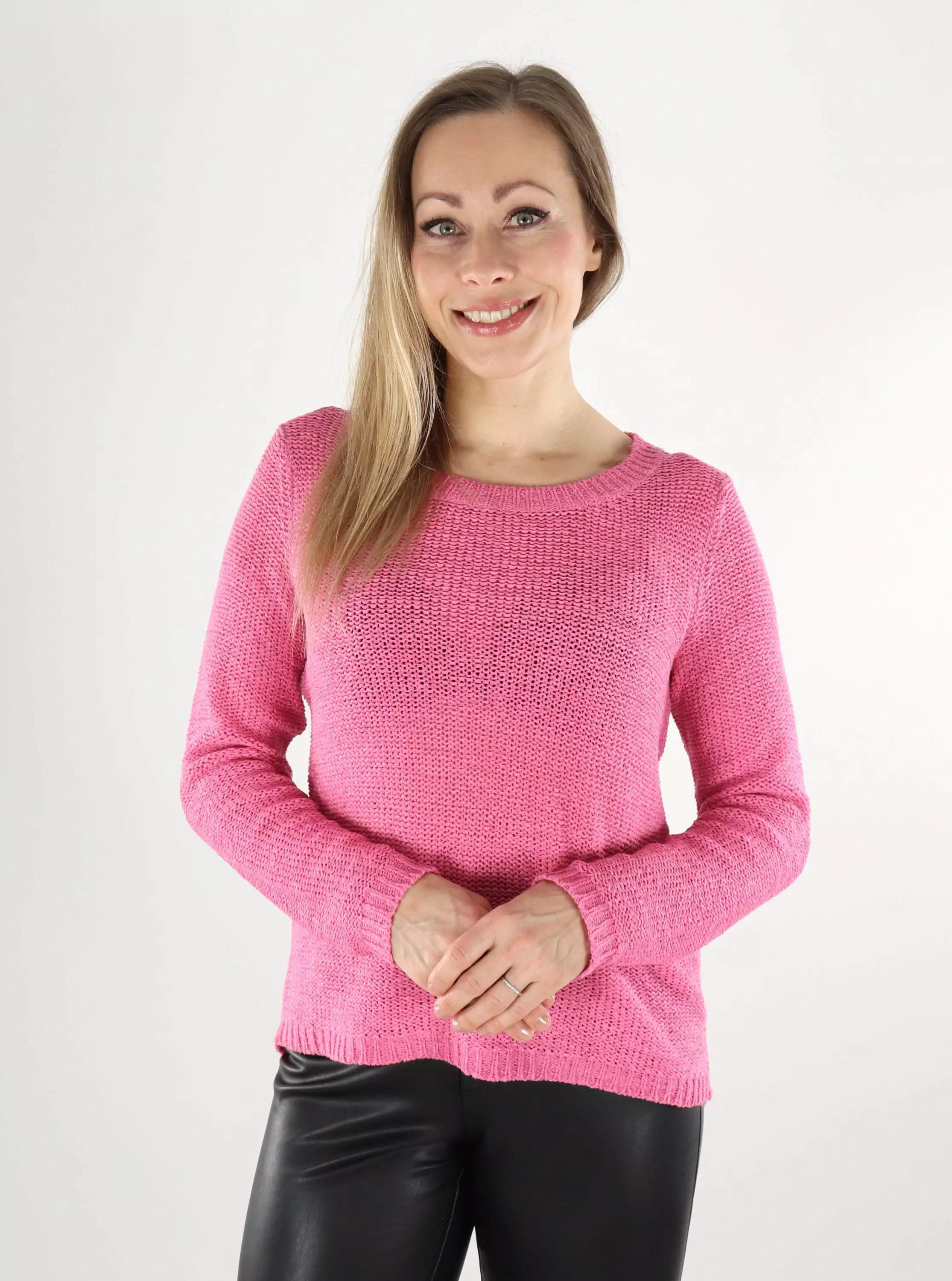 A casual pink sweater from Only, whose stretchy knit and loose fit make it really comfortable to wear.