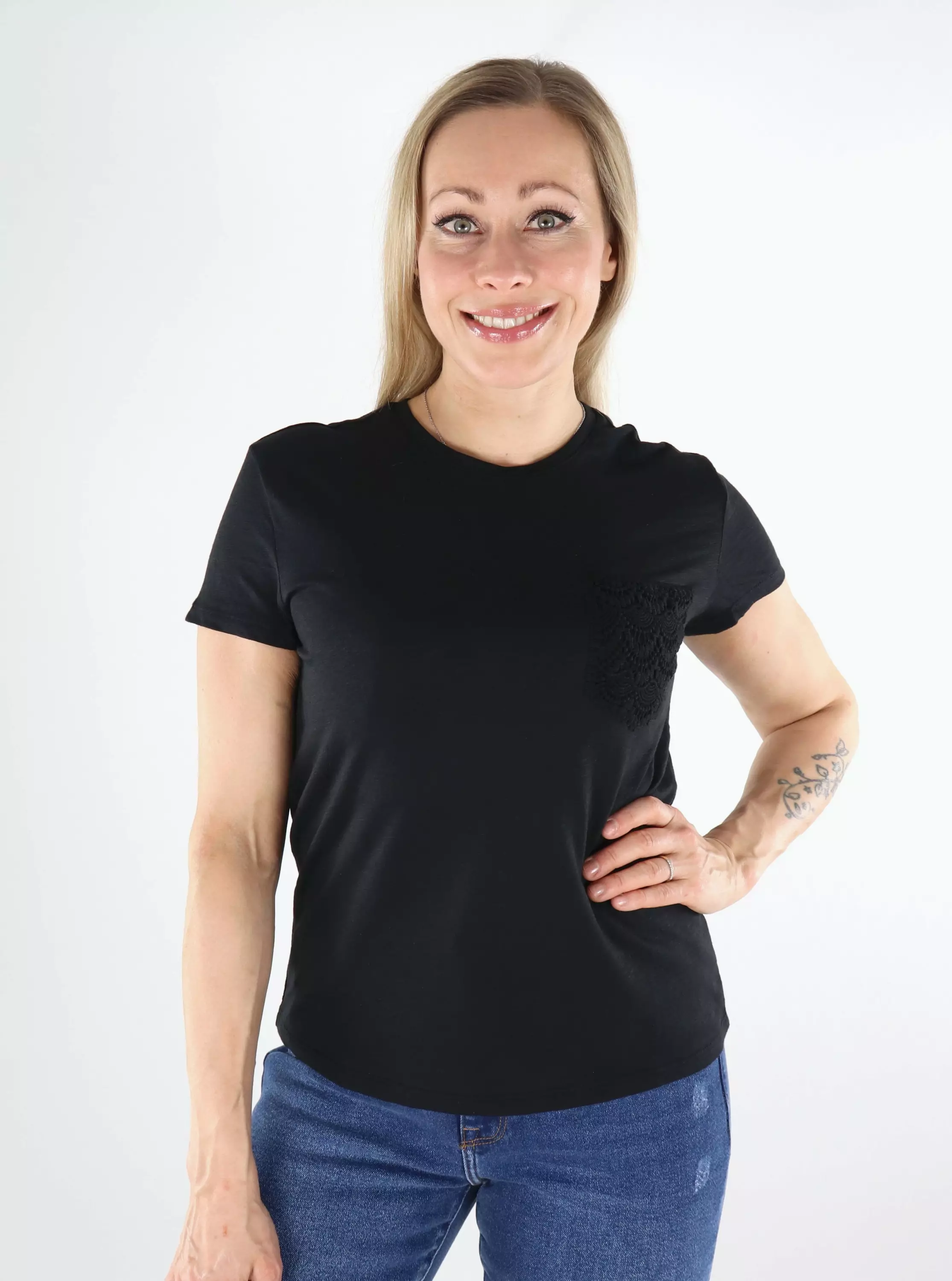 Only's trendy, classic t-shirt with a beautiful lace chest pocket. Made of a pleasantly soft and breathable cotton blend.