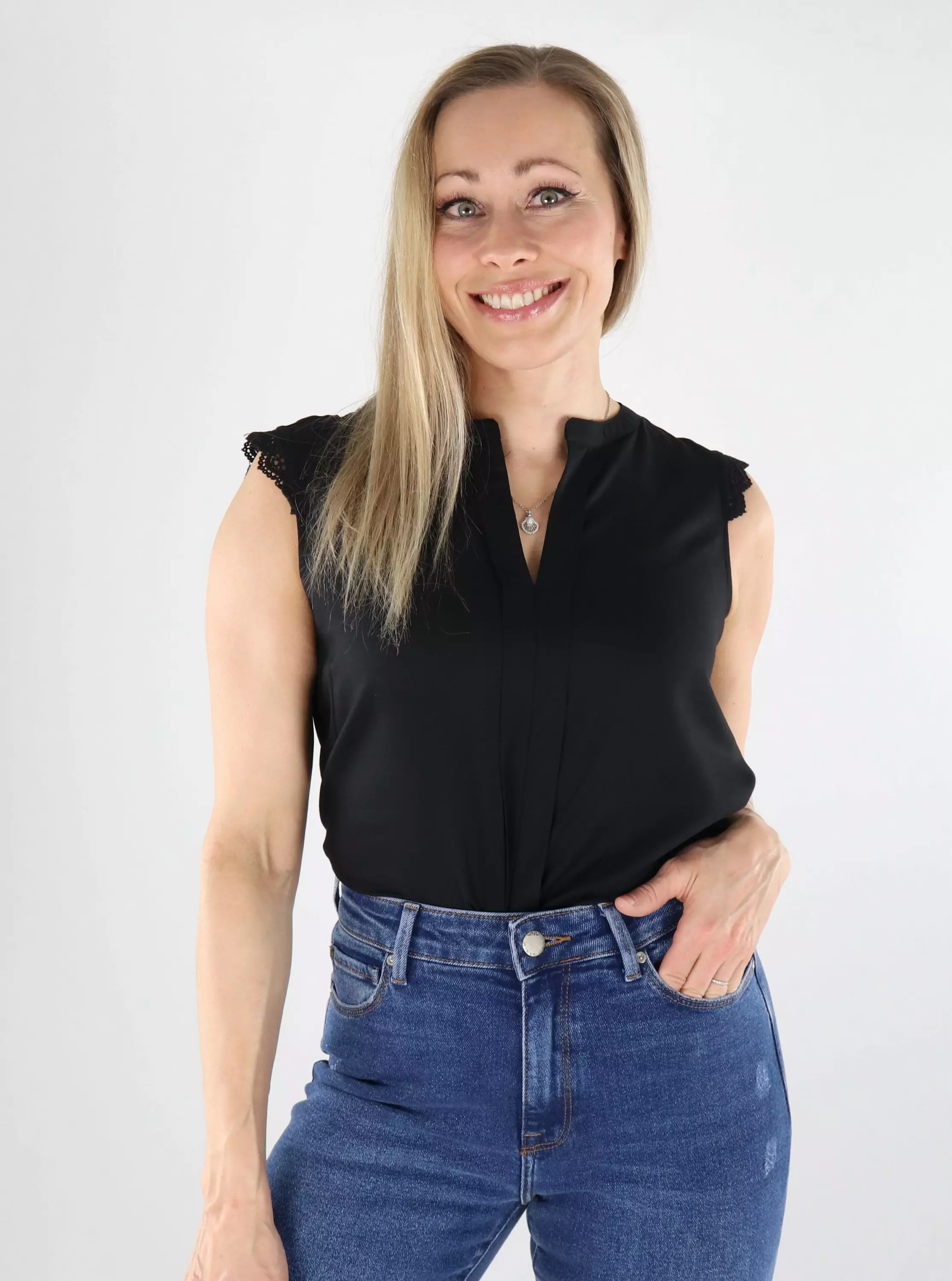 A top made of lightweight viscose charms with a beautiful V-neck and lace details on the sleeves. A perfect choice for both everyday life and parties!