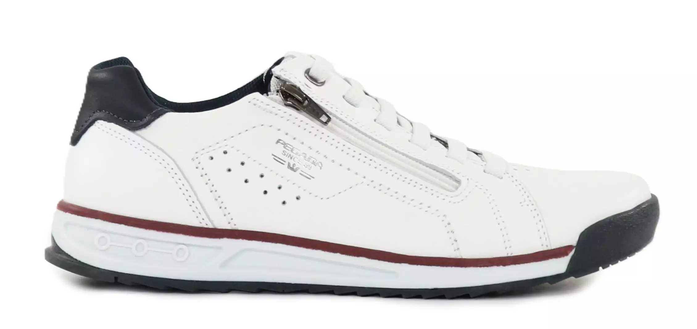 Genuine leather men's sneakers with grippy outsoles. Thanks to the elastic laces and zipper, putting on the shoes is easy and fast!