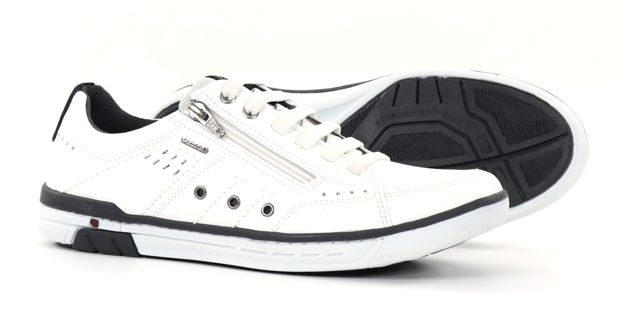 Genuine leather men's sneakers with grippy outsoles. Thanks to the elastic laces and the zipper, putting on the shoes is easy and quick!