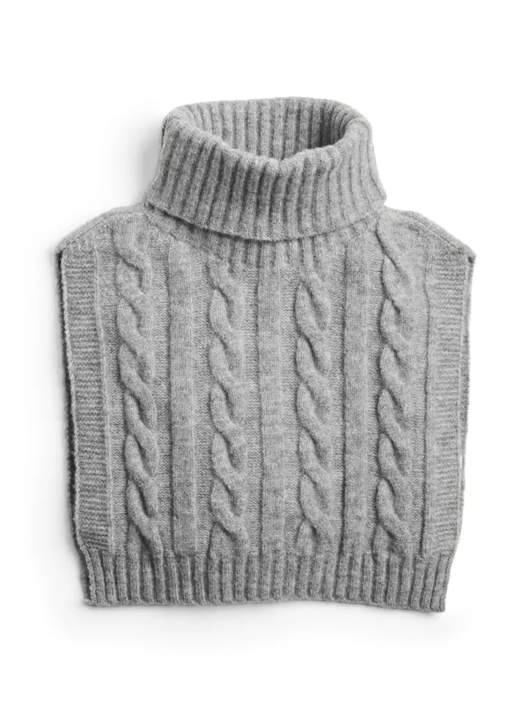 Beautiful knitted turtleneck with braid pattern. The collar protects in windy weather and is easy to wear under coats!