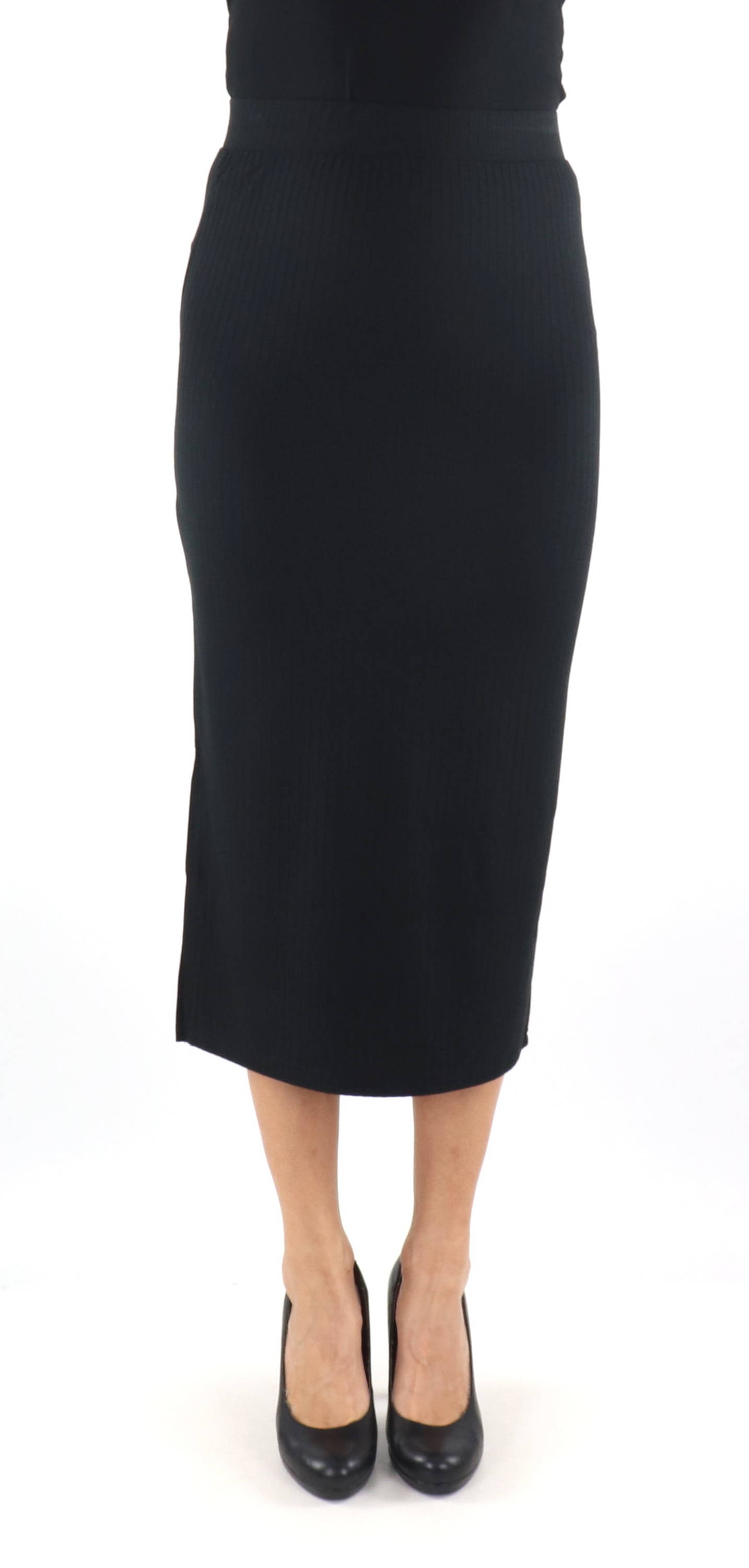 Midi dress made of stretchy ribbed fabric with a side slit.