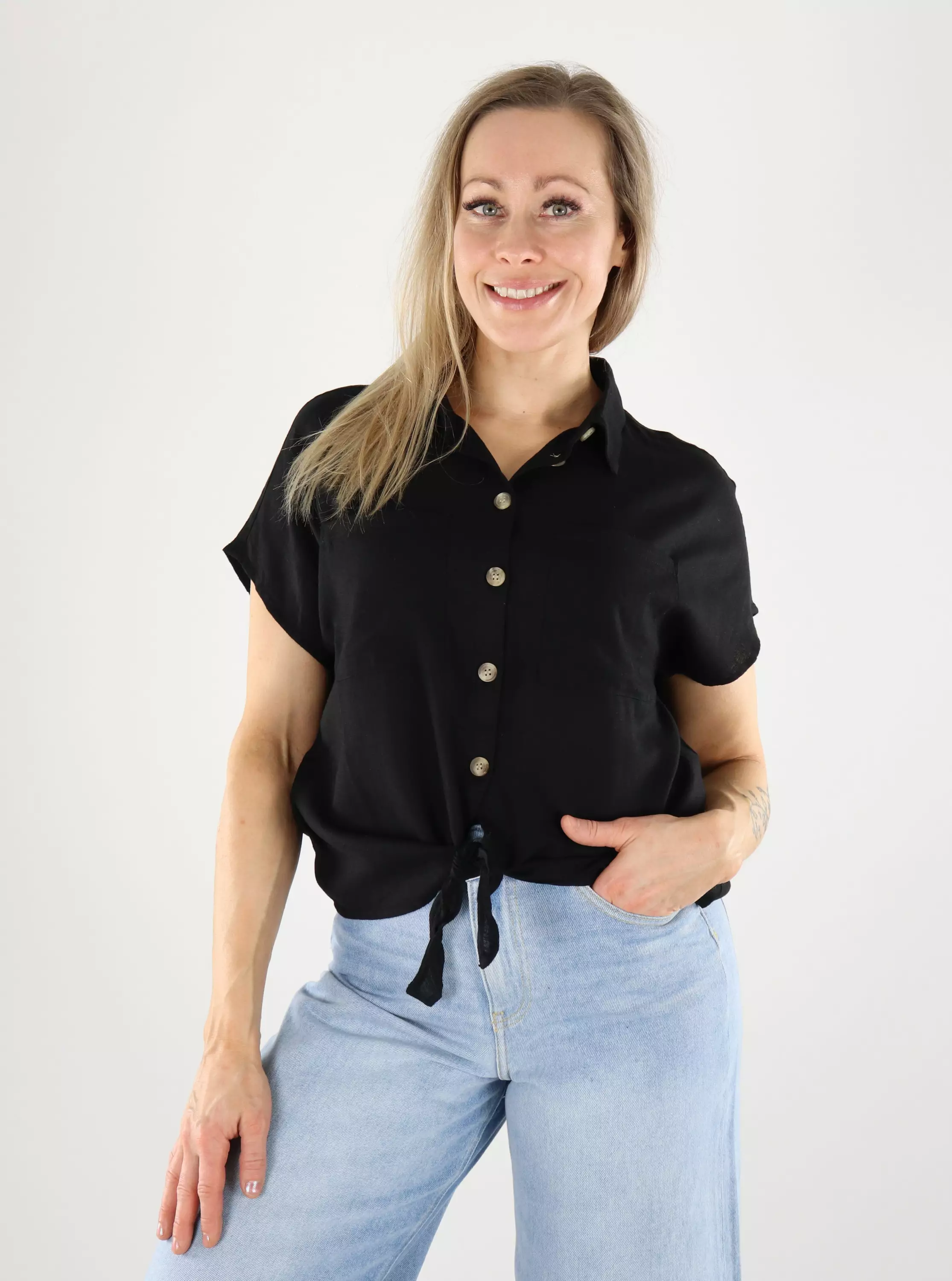 Pieces t-shirt linen shirt black