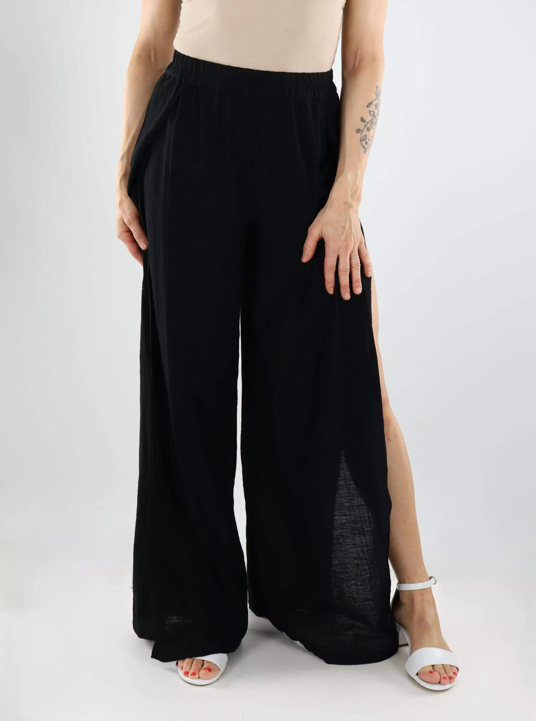 Pants made of organic cotton with striking side slits. Ideal for warm summer days!