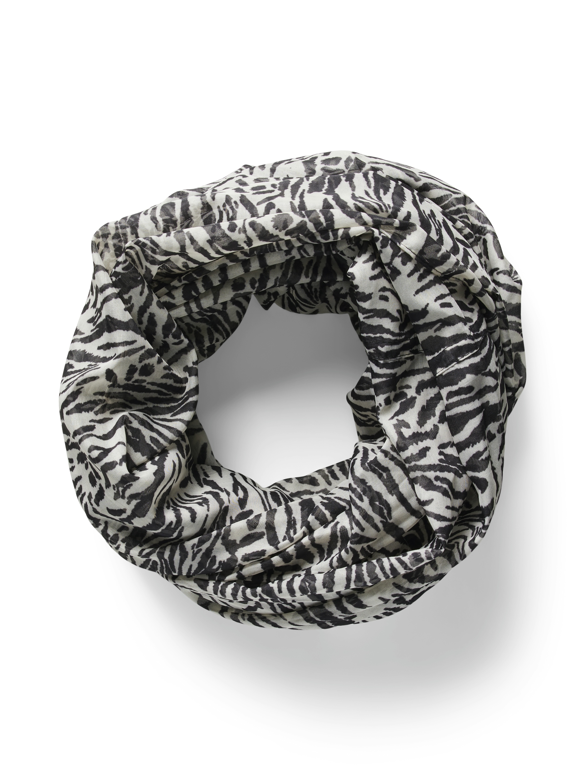 Patterned tube scarf made of thin fabric.
