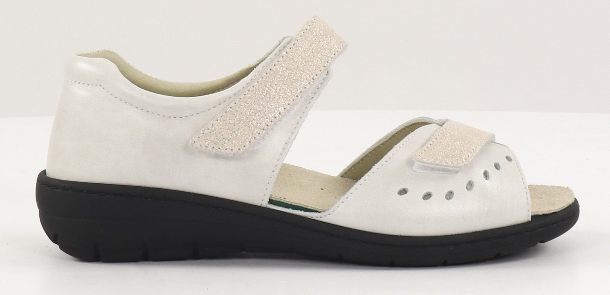 - Sandals with extra wide last for indoor and outdoor use