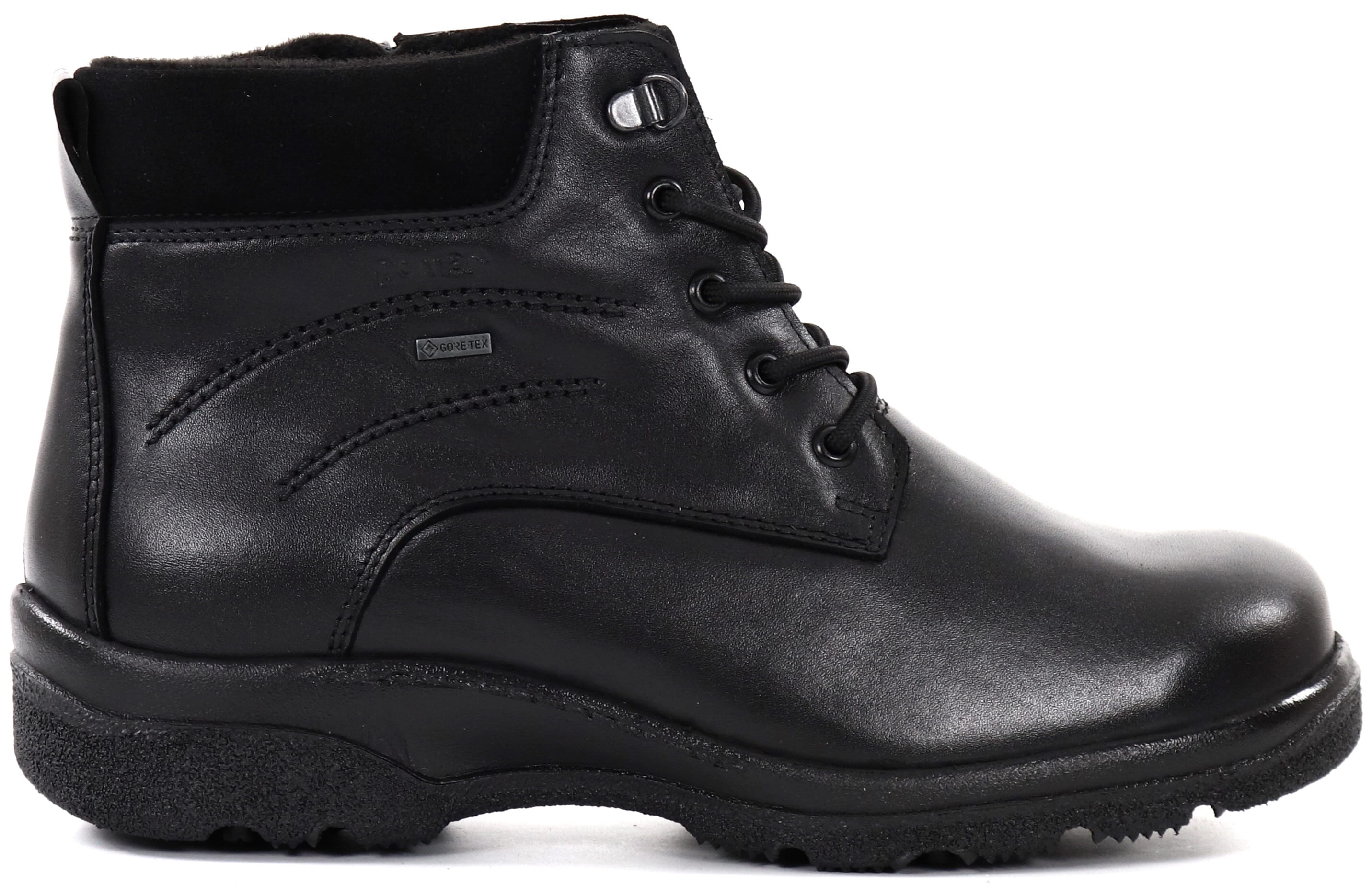 Leather ankle boots with wide lasts. Dirt and water repellent.