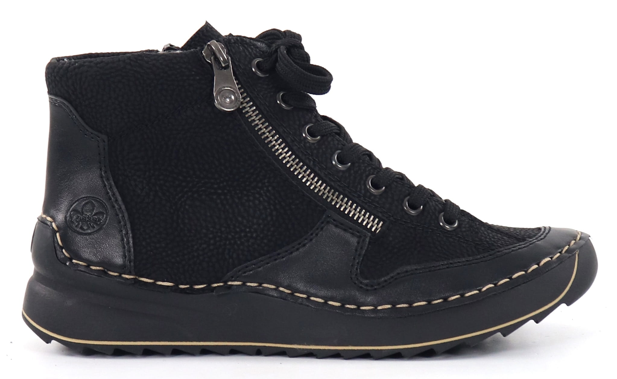 - Zipper on the inner side, laces on the front