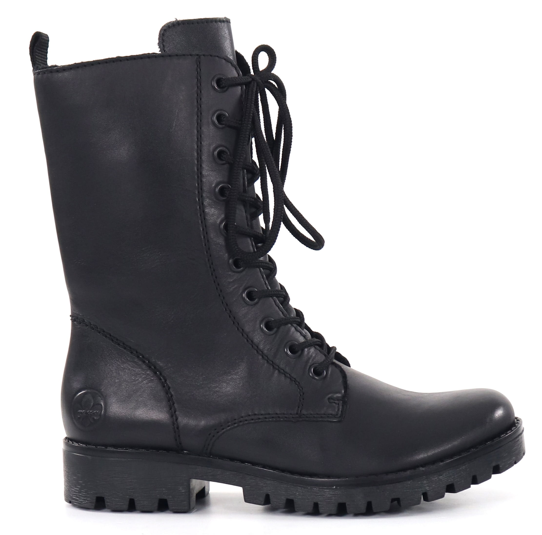 Stylish combat boot -styled Rieker ankle boots in leather.