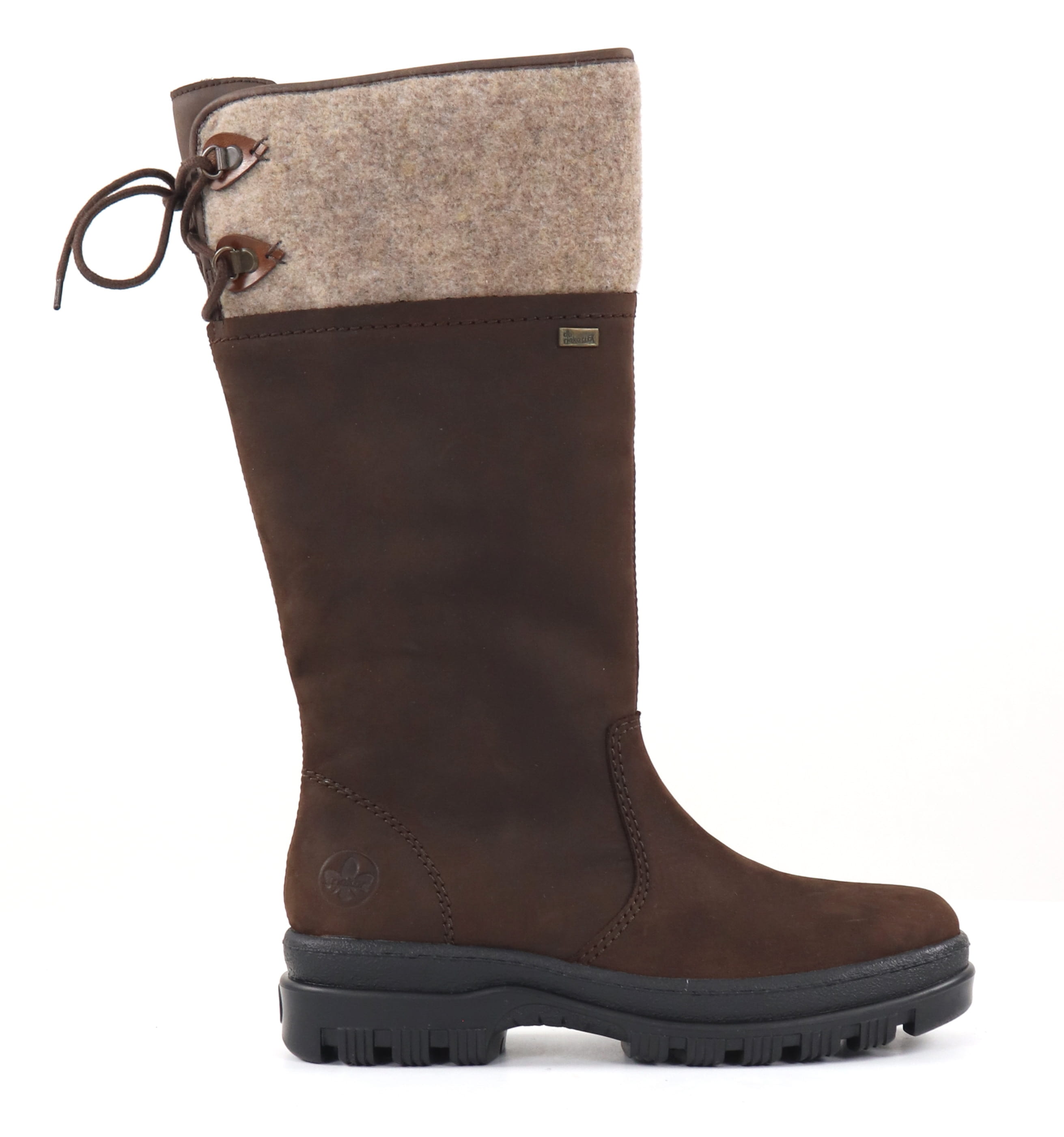 Warm leather boots with water-resistant RiekerTex-coating and turnable studs.