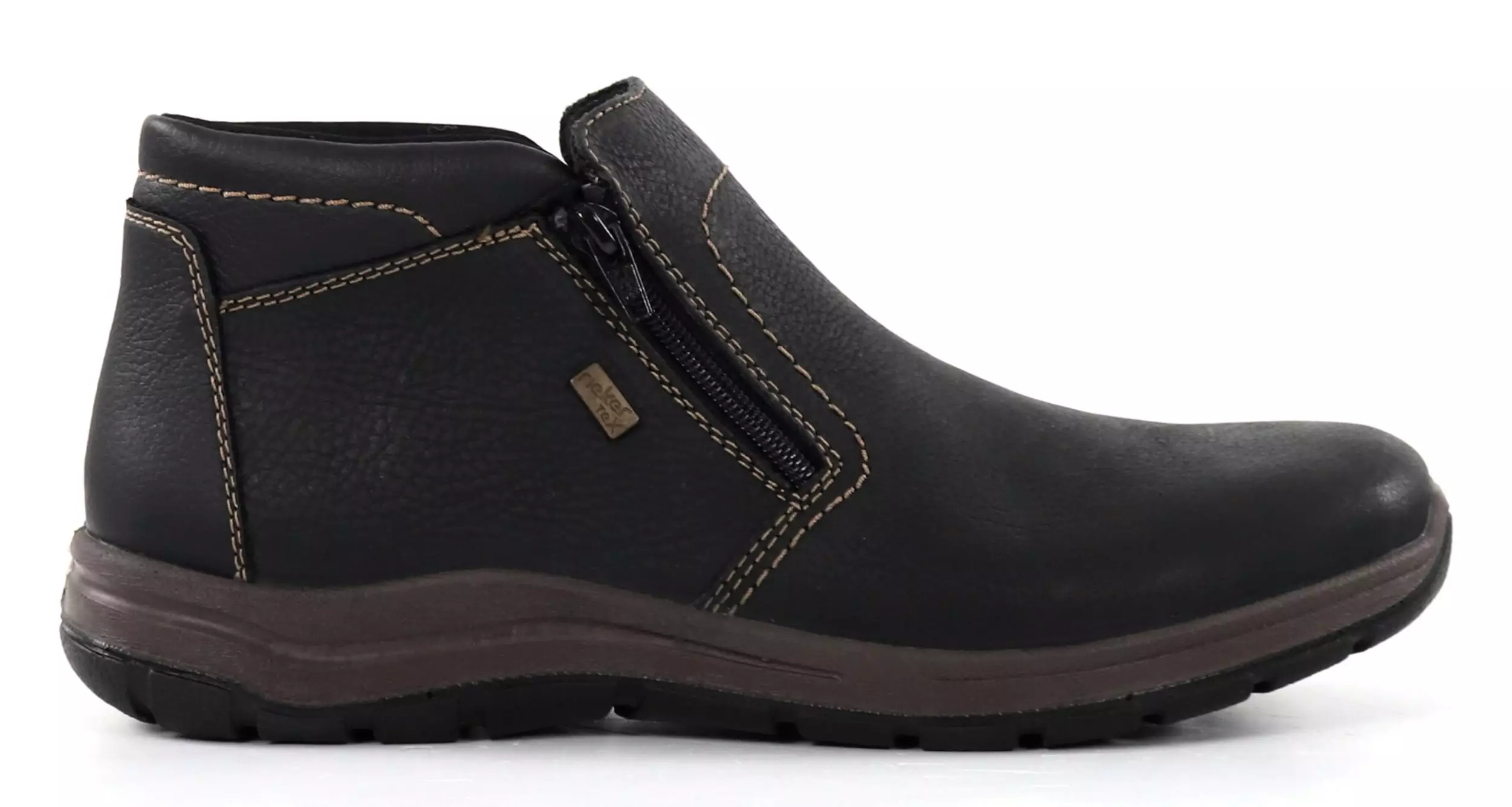 Men's wide-last ankle boots with sheep wool lining. Zippers on both sides make it easy to put on the shoes! RiekerTex membrane provides additional protection to reduce the effects of cold, moisture and wind caused by the weather.