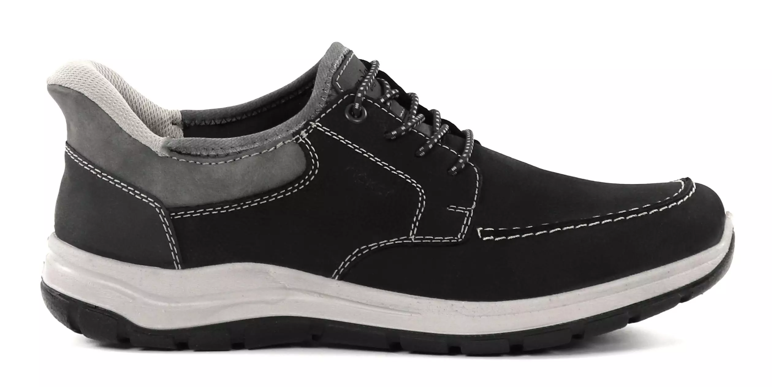 These Rieker men's wide-soled walking shoes are easy to put on thanks to the READY2GO heel structure. The shoes have a removable insole and a light, flexible and shock-absorbing Antistress sole.